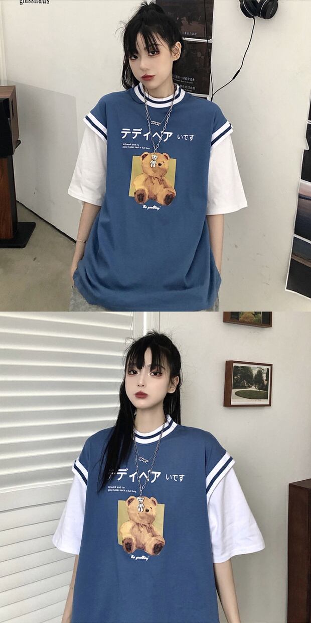 スタイルTシャツ サマースタンダードプリント柄ルーズトップス レトロ 夏物 ケッペル83362620125