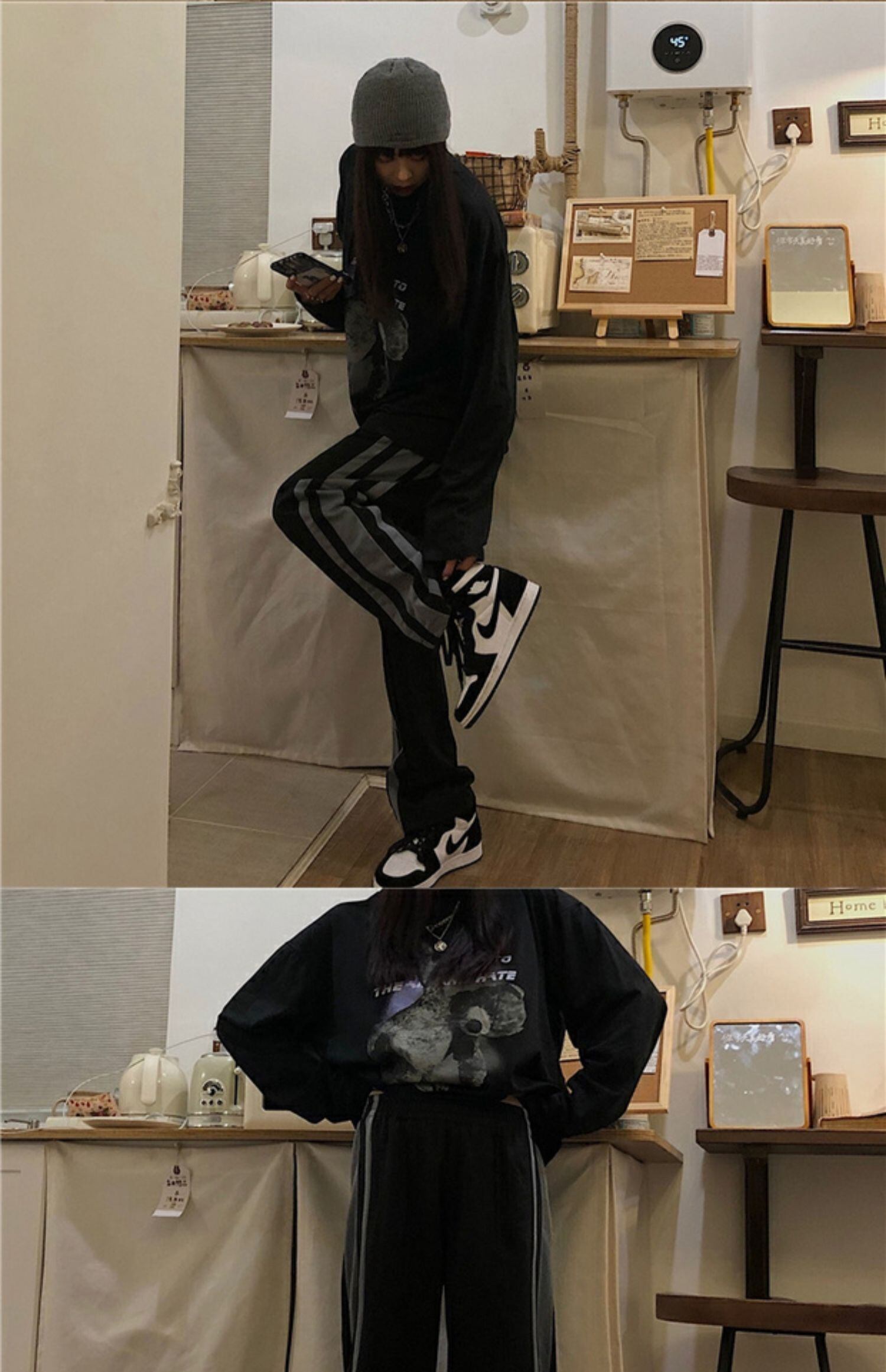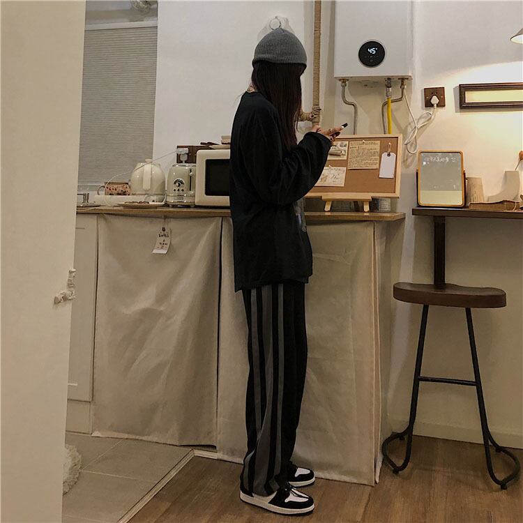 パンツ ハイウェストウェストオータムルーズ薄手カジュアルストライプ 秋物 ケッペル71212667792