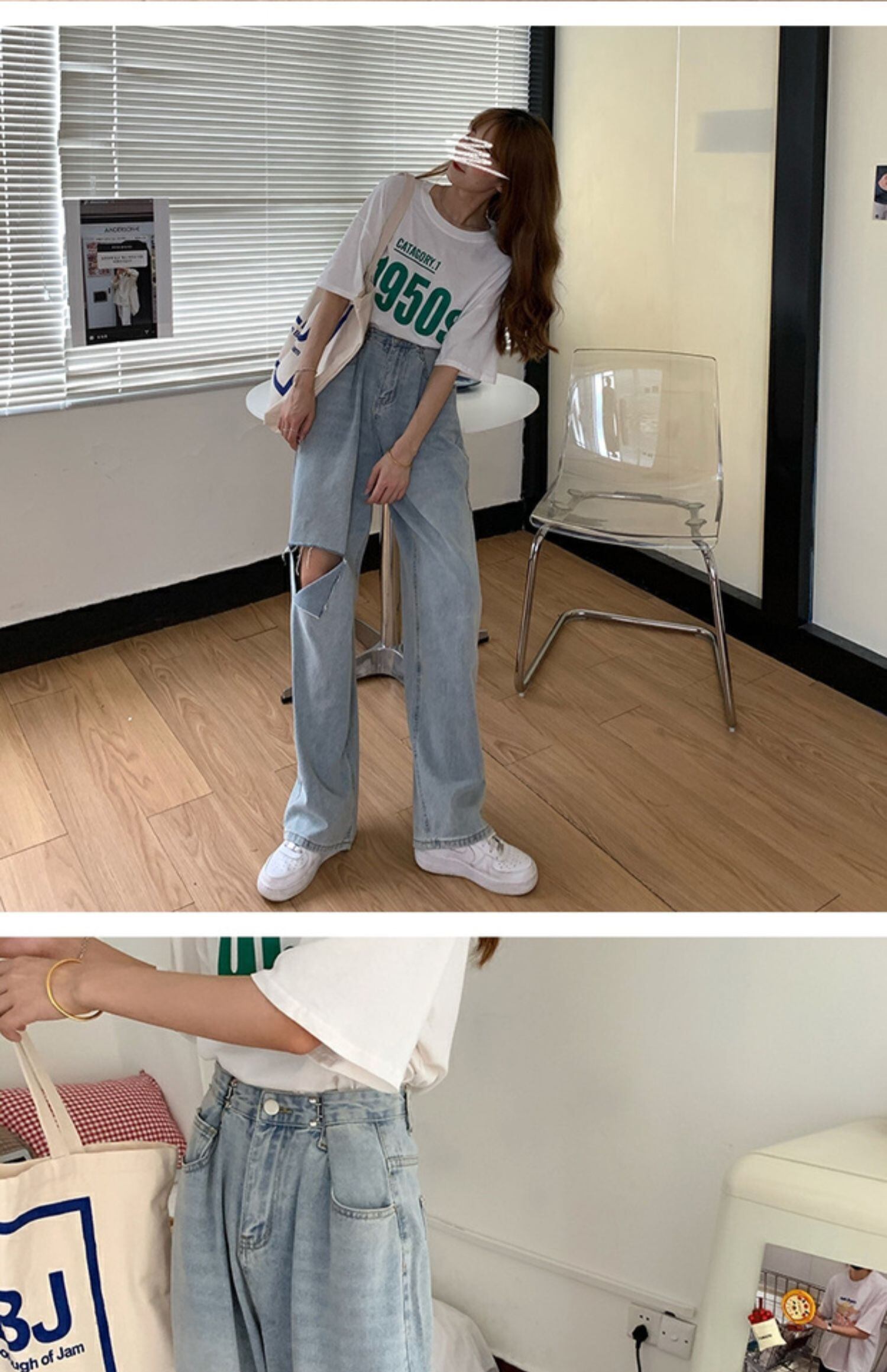 スプリングサマールーズカジュアルパンツ ハイウェストウェストワイドレッグジーンズ 春物 夏物 ワイドパンツ ケッペル19732466395
