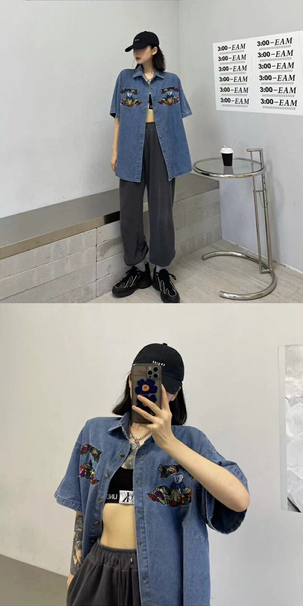 サマーカジュアルシャツ ルーズスタイルトップス 夏物 ケッペル866239887