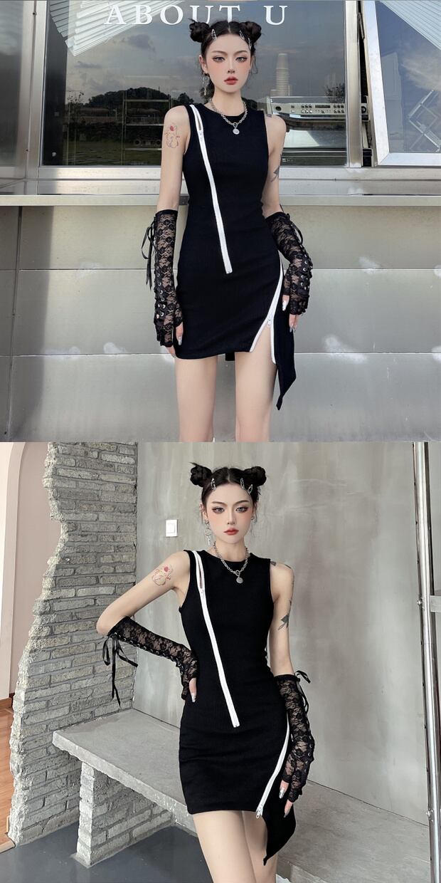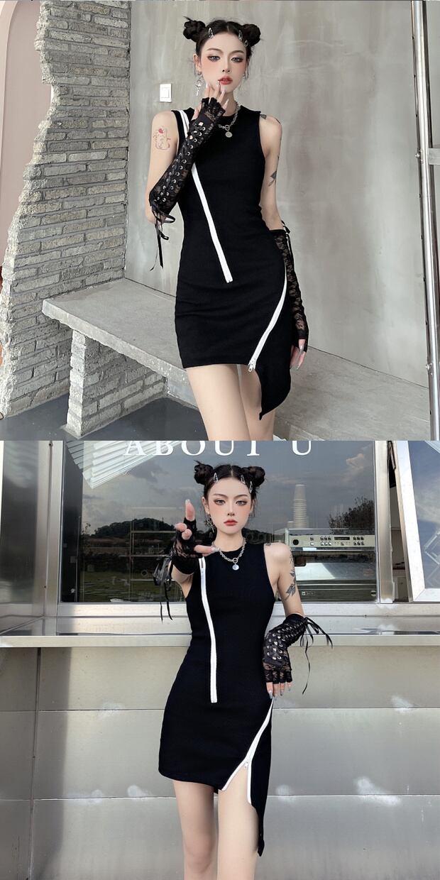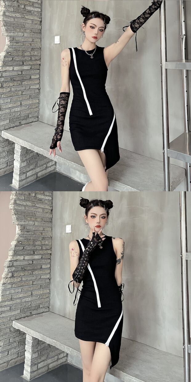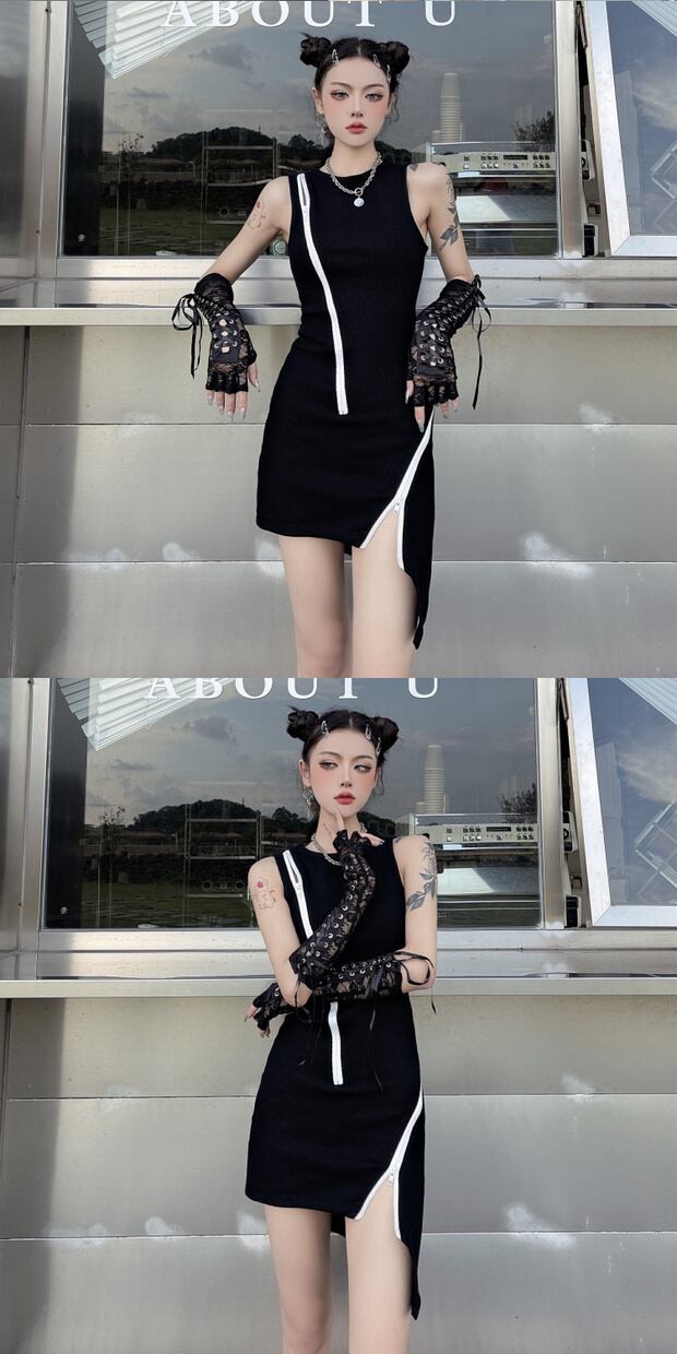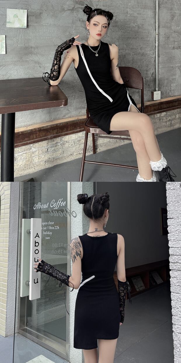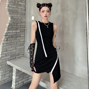 ダークドレス スリムショートスカート サマーノースリーブ 夏物 ケッペル91112203062
