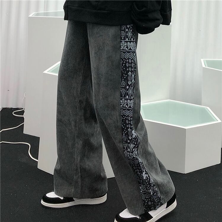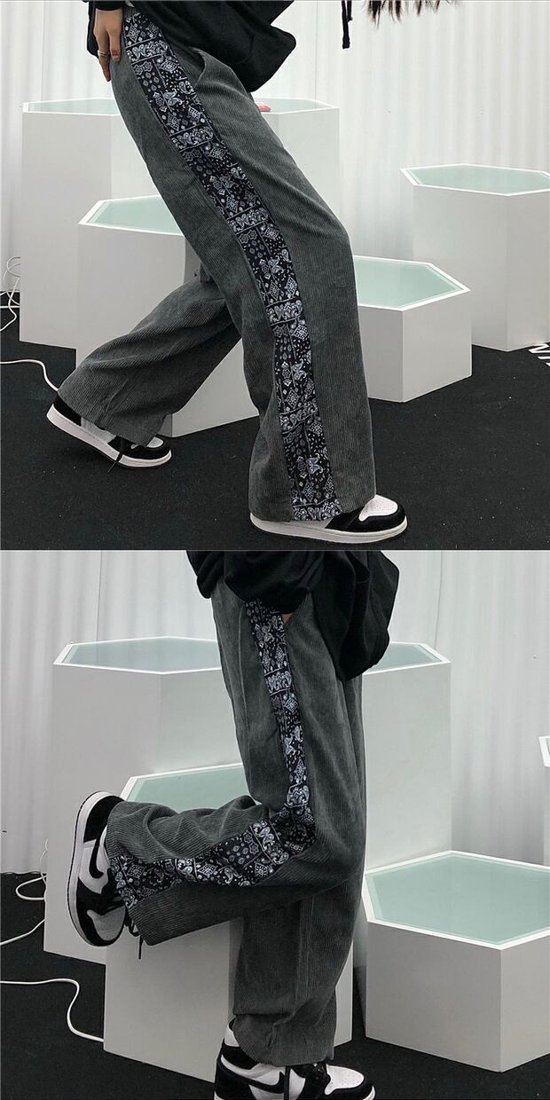 オータムウィンターカジュアルパンツ スタンダードFlowerデザイン コーデュロイレディース レトロ 秋物 冬物 フラワーデザイン ステッチ ケッペル64087745514