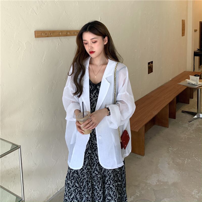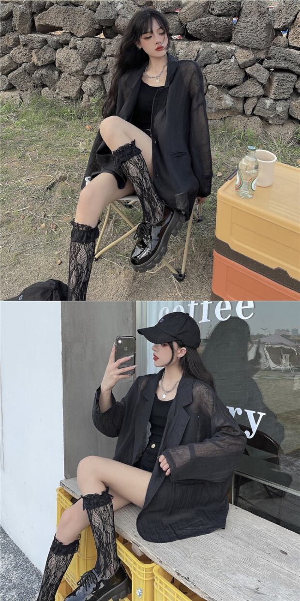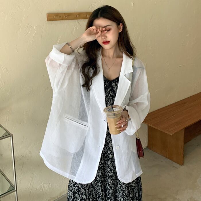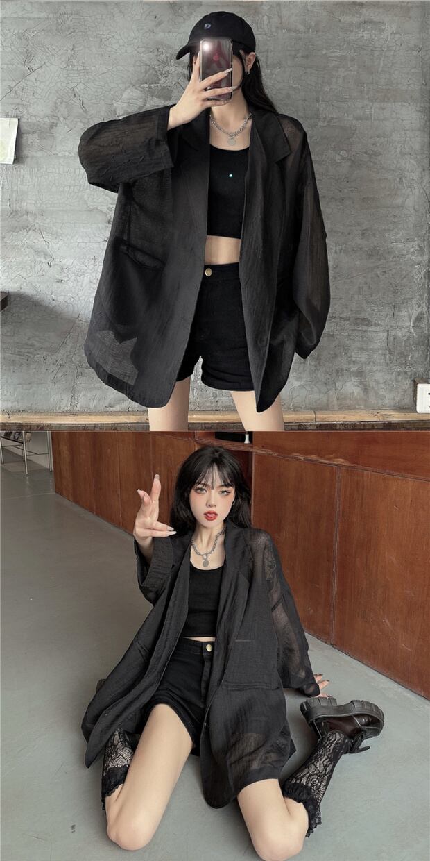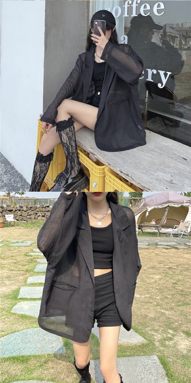 サマーダーク薄手レディースカジュアルジャケット ルーズカラーシャツ ロング ストリート 夏物 ケッペル73794684775