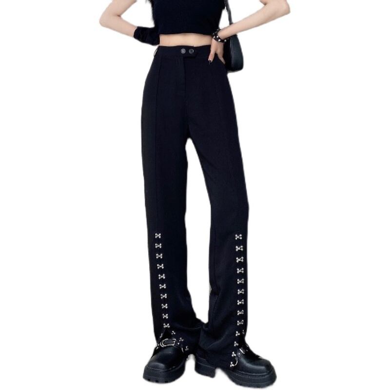 サマーワイドレッグパンツ スタンダードルーズカジュアルハイウェストウェストレースオーバーオール レトロ 夏物 ワイドパンツ ケッペル55789562988