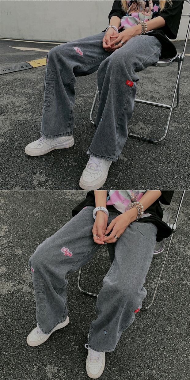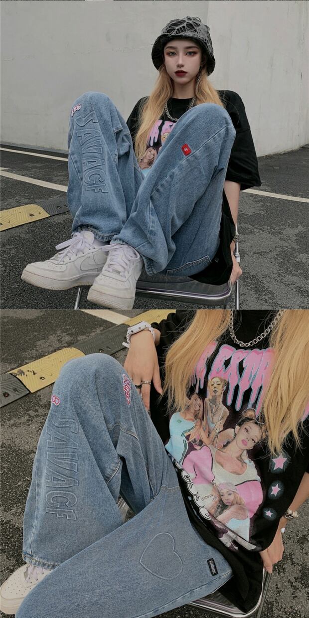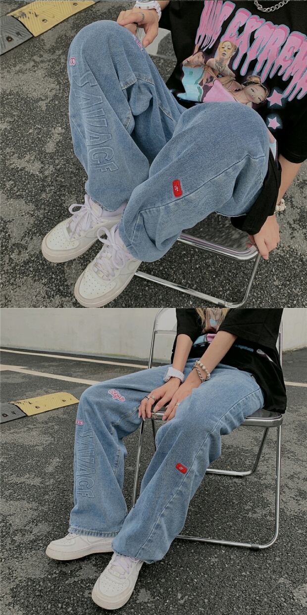 スタイルルーズジーンズ ハイウェストウェストカジュアルパンツ ケッペル94671845713