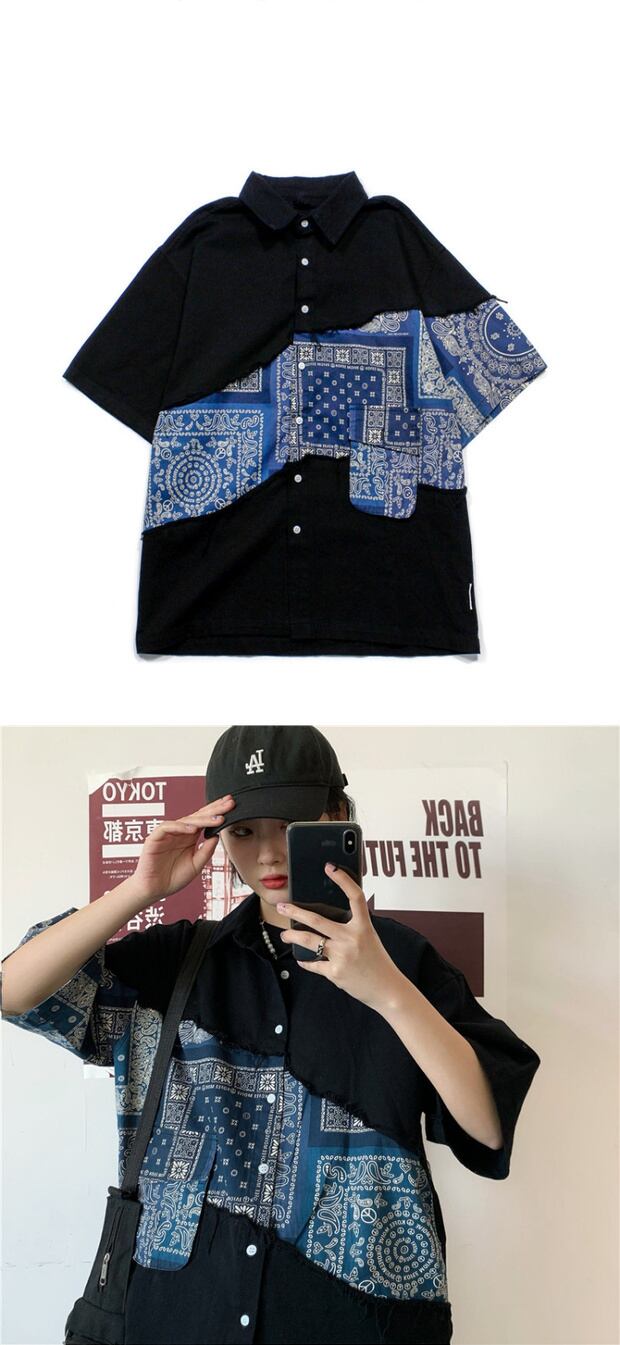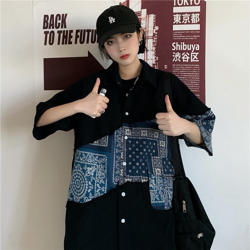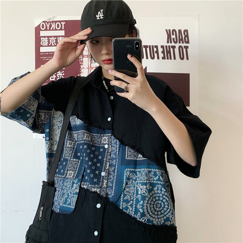 ダークFlowerデザイン シャツ スタイルルーズトップス レディース かわいい フラワーデザイン ステッチ ケッペル96656076179