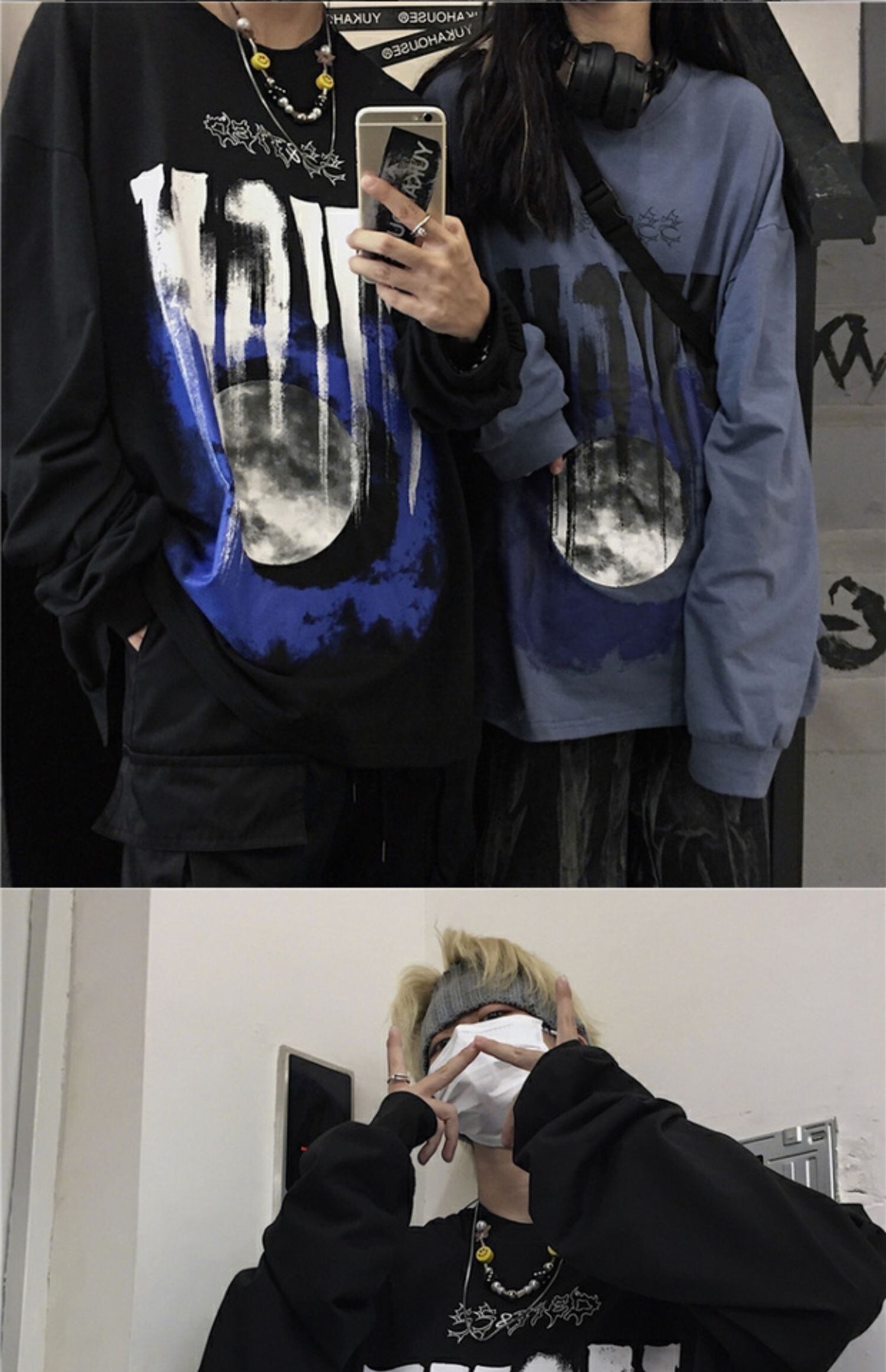 ダークTシャツ オータムレディースプリントルーズトップス ロング 大きめサイズ かわいい 秋物 ケッペル86831316901