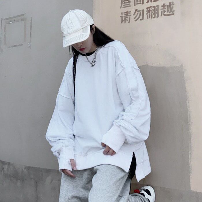 ルーズカジュアルセーター レディースラウンドネックプルオーバー ブラウス ロング 長袖 かわいい Oネック ケッペル73416696299