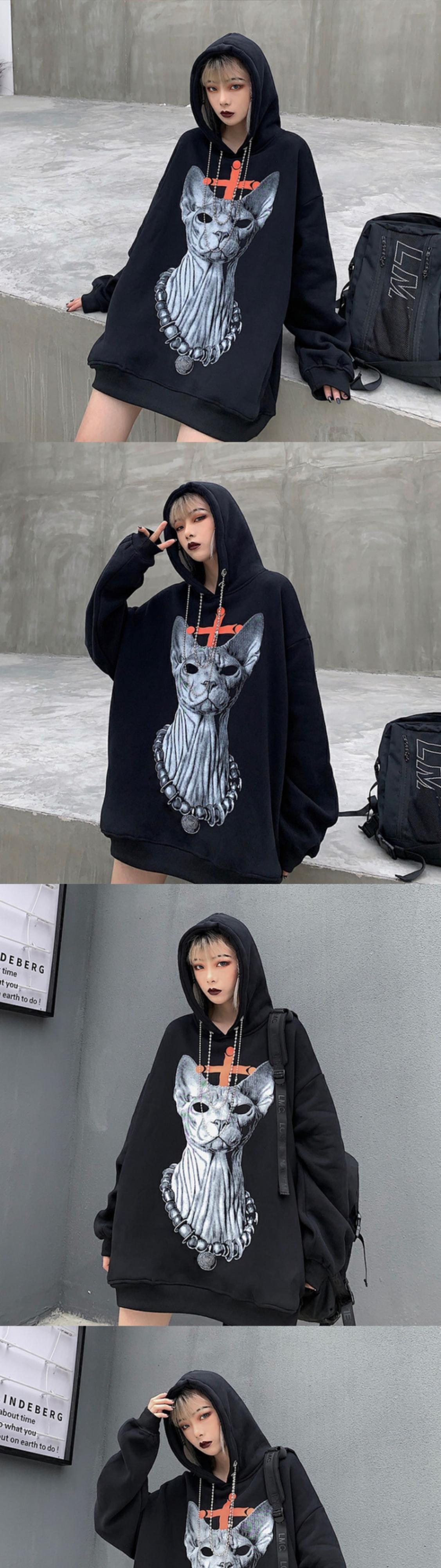 セーター レディースルーズプリントシャツ スタイルベルベットフードジャケット ストリート かわいい ケッペル58894729173