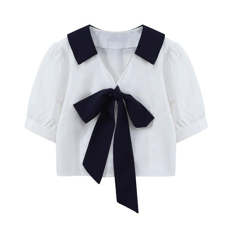 スタイルサマーショートシャツ カラーリボンカジュアルTシャツ 夏物 ステッチ ケッペル80591783959