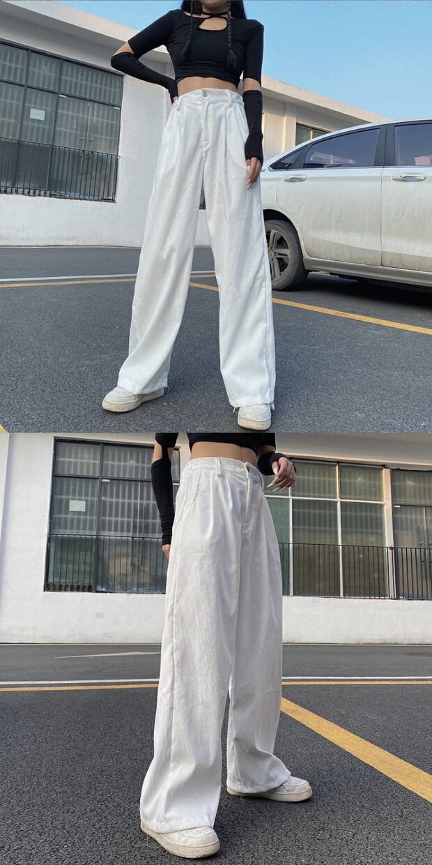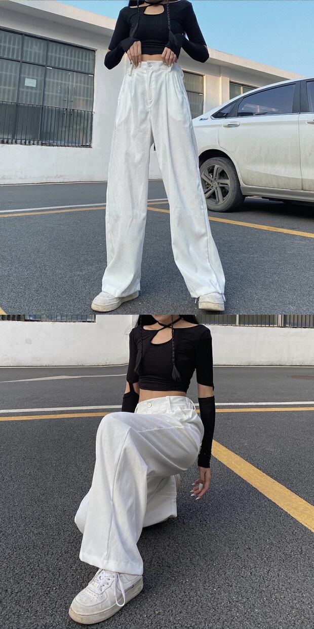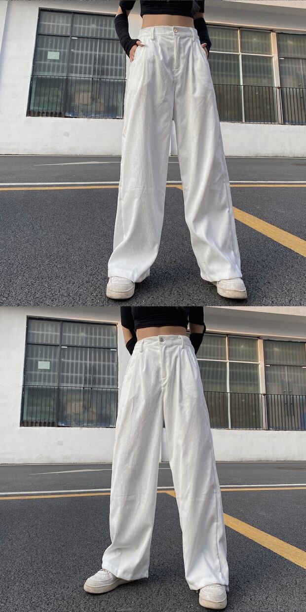 サマーレディーススタンダードルーズパンツ ホワイト薄手カジュアルスタイルハイウェスト レトロ ストリート 夏物 ケッペル52433498094