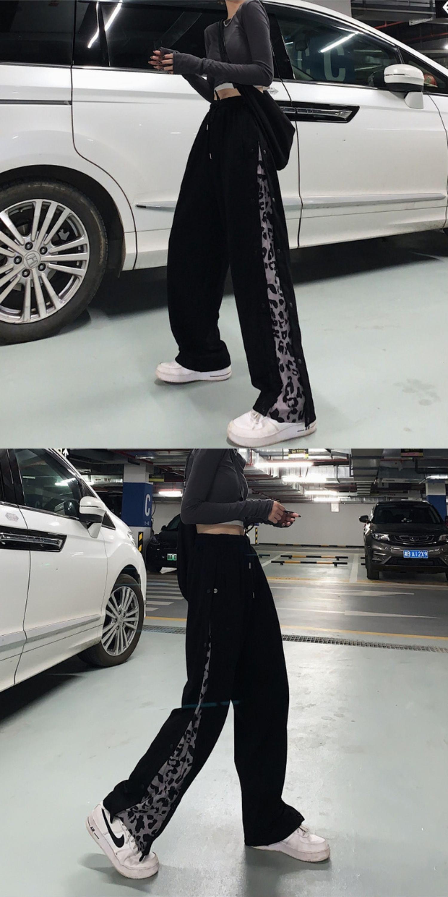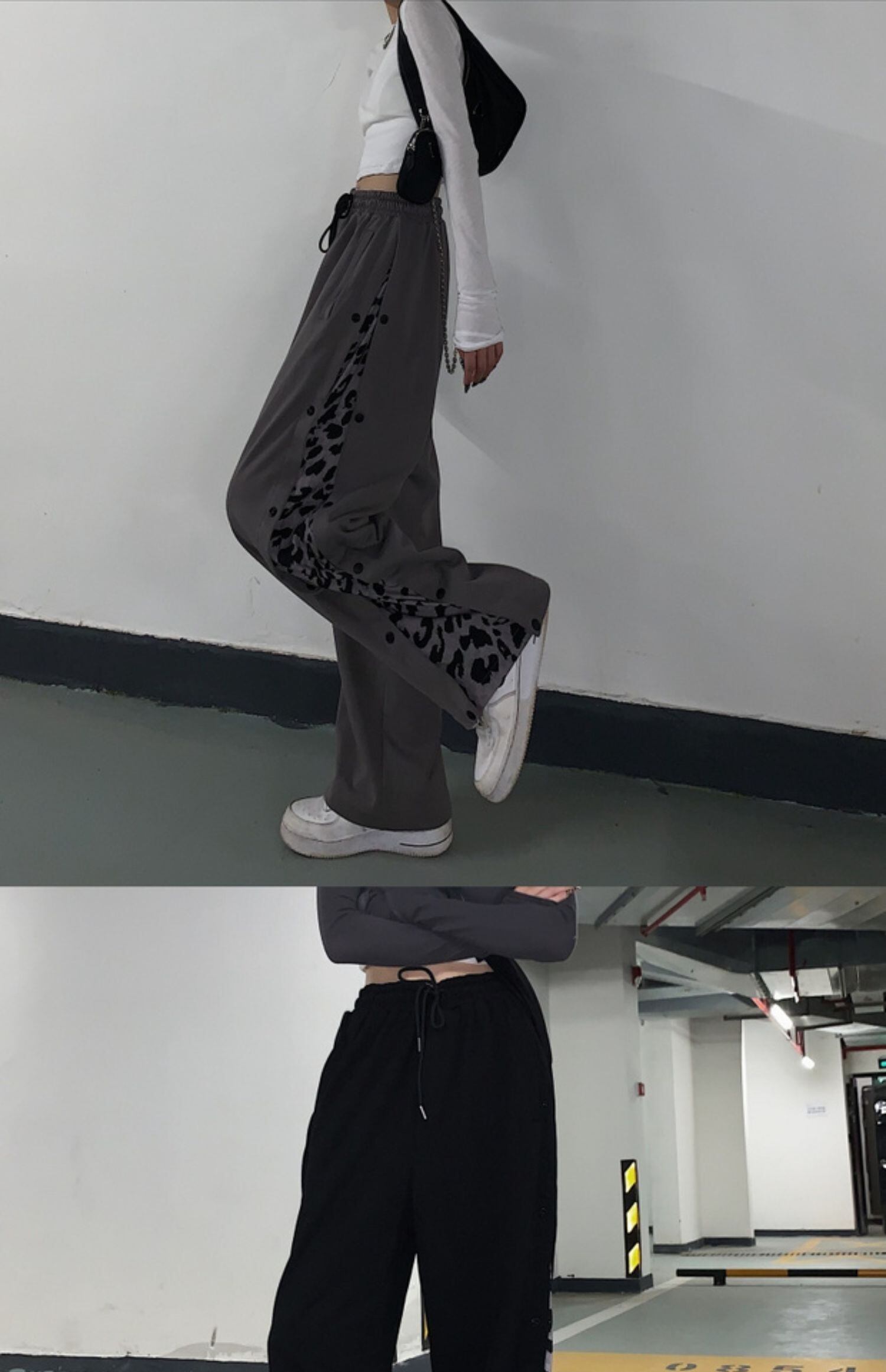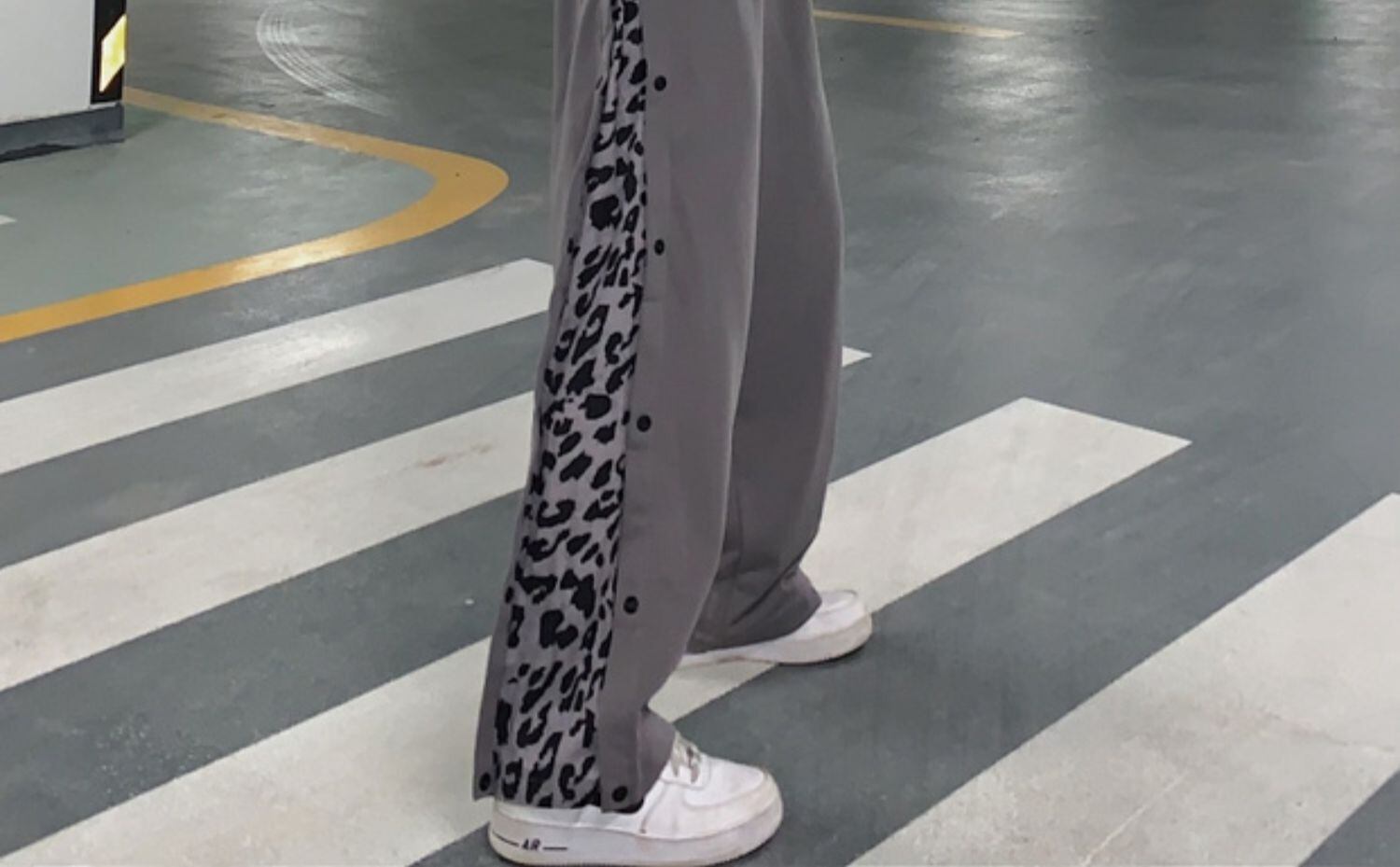 レオパードパターンパンツ スタンダードルーズカジュアル レトロ ストリート かわいい ステッチ ケッペル23246570033
