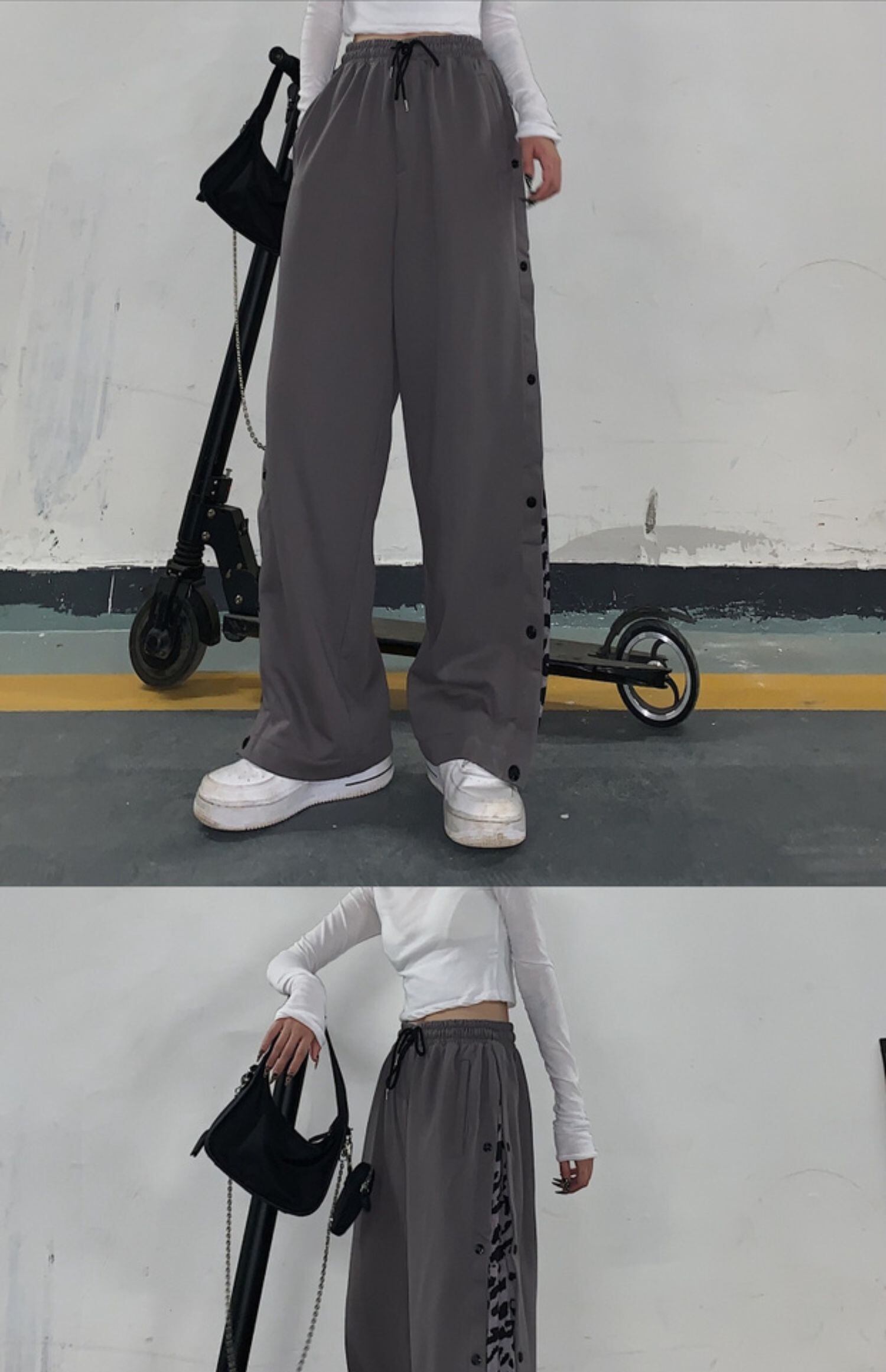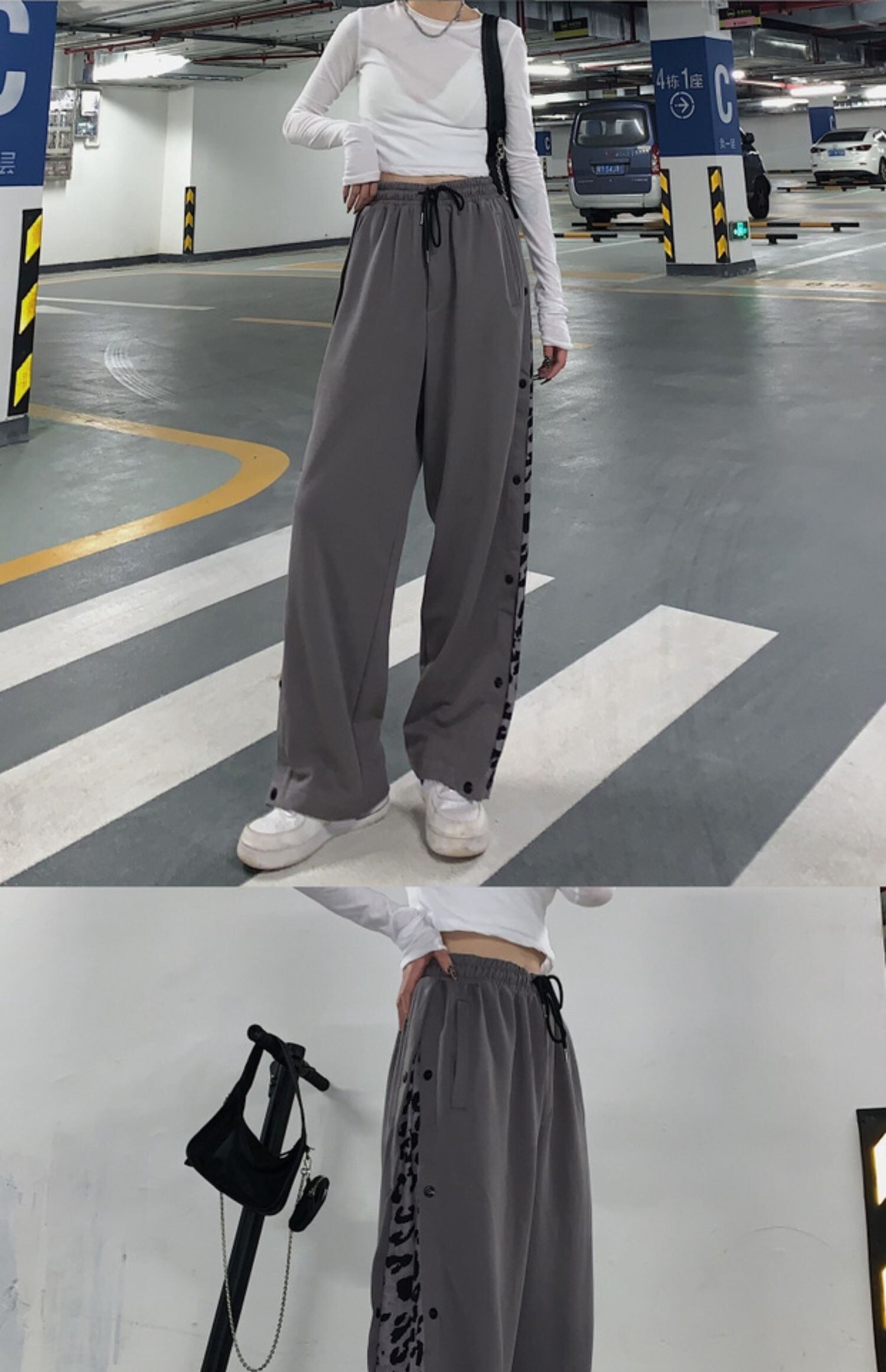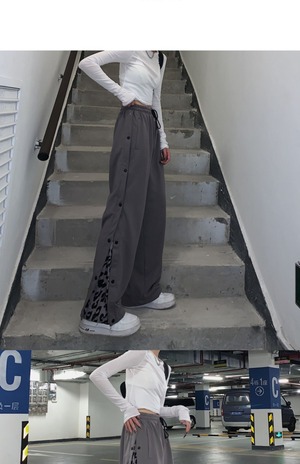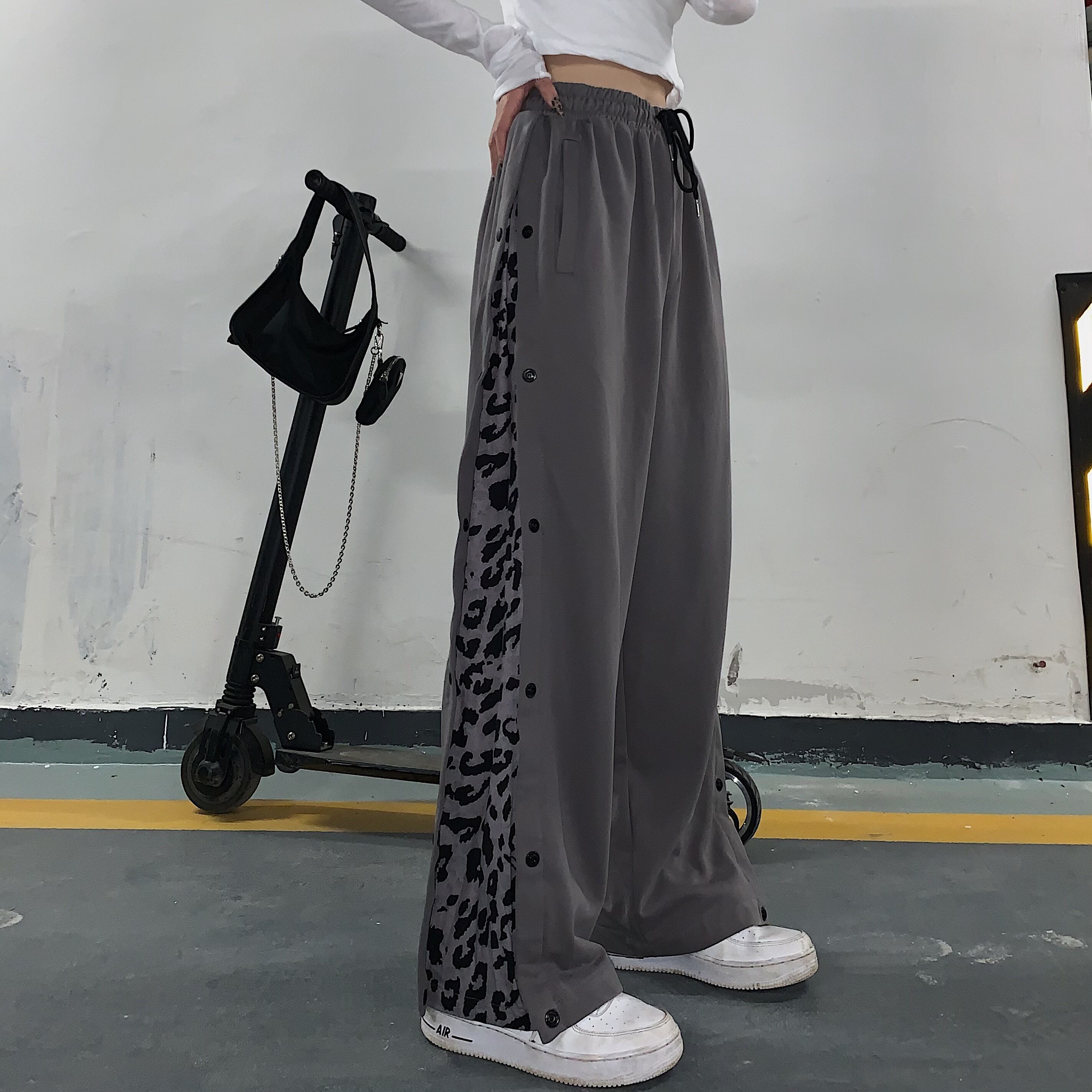 レオパードパターンパンツ スタンダードルーズカジュアル レトロ ストリート かわいい ステッチ ケッペル23246570033