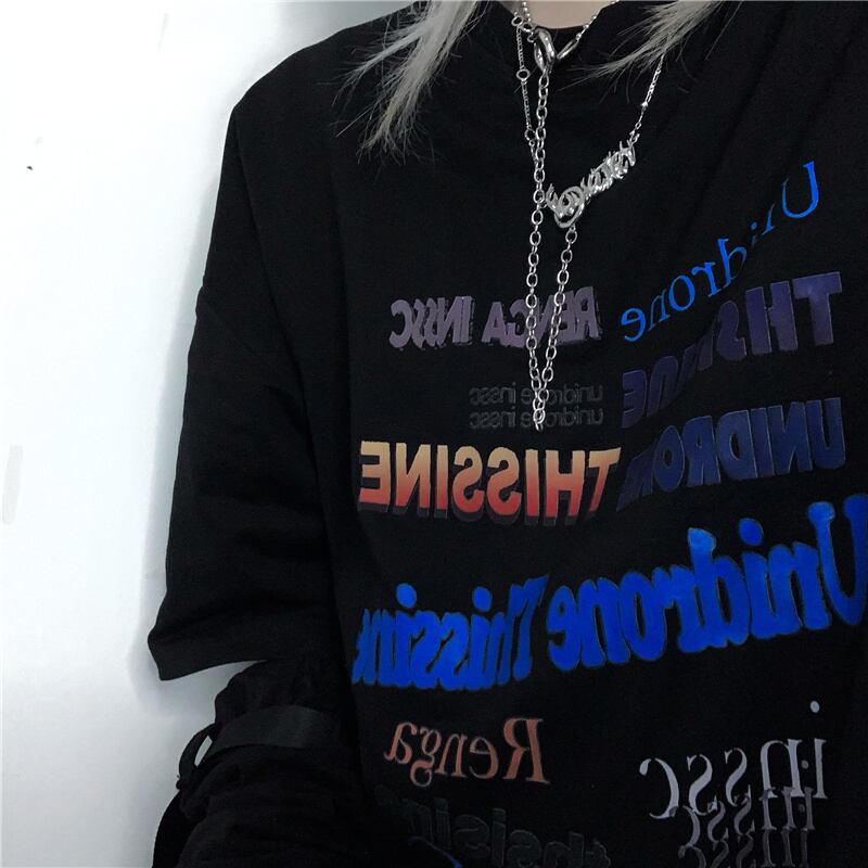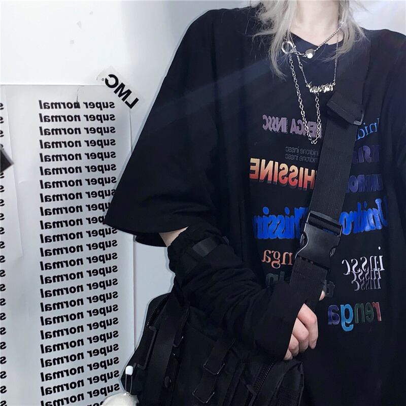 サマースタイルカジュアルスタンダードプリントTシャツ ダークトップス レトロ ストリート 夏物 ケッペル63363559602