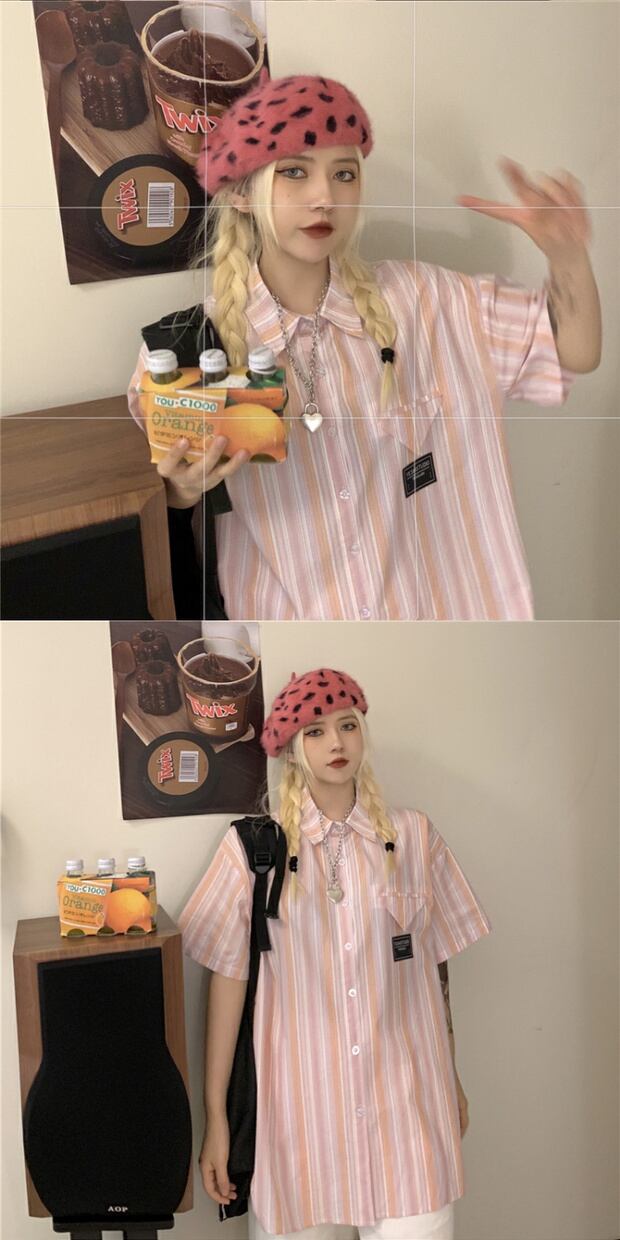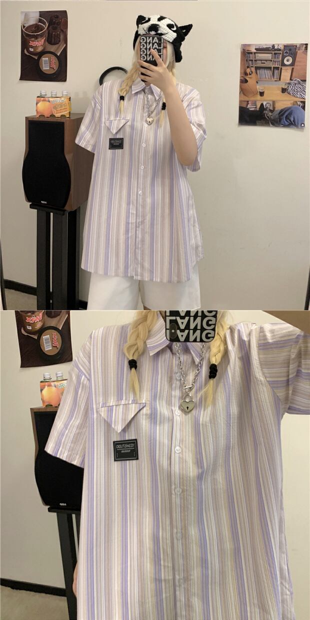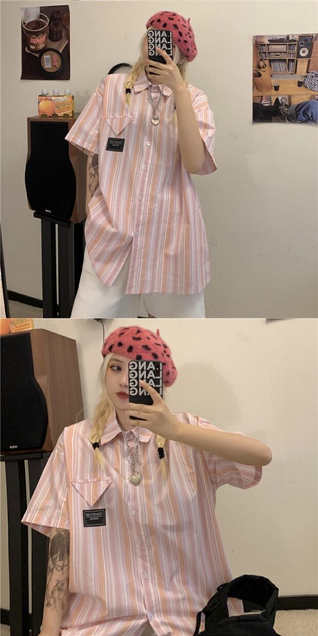 サマーカジュアルストライプシャツ レディーススタンダードルーズ レトロ 大きめサイズ 夏物 ケッペル15169391622