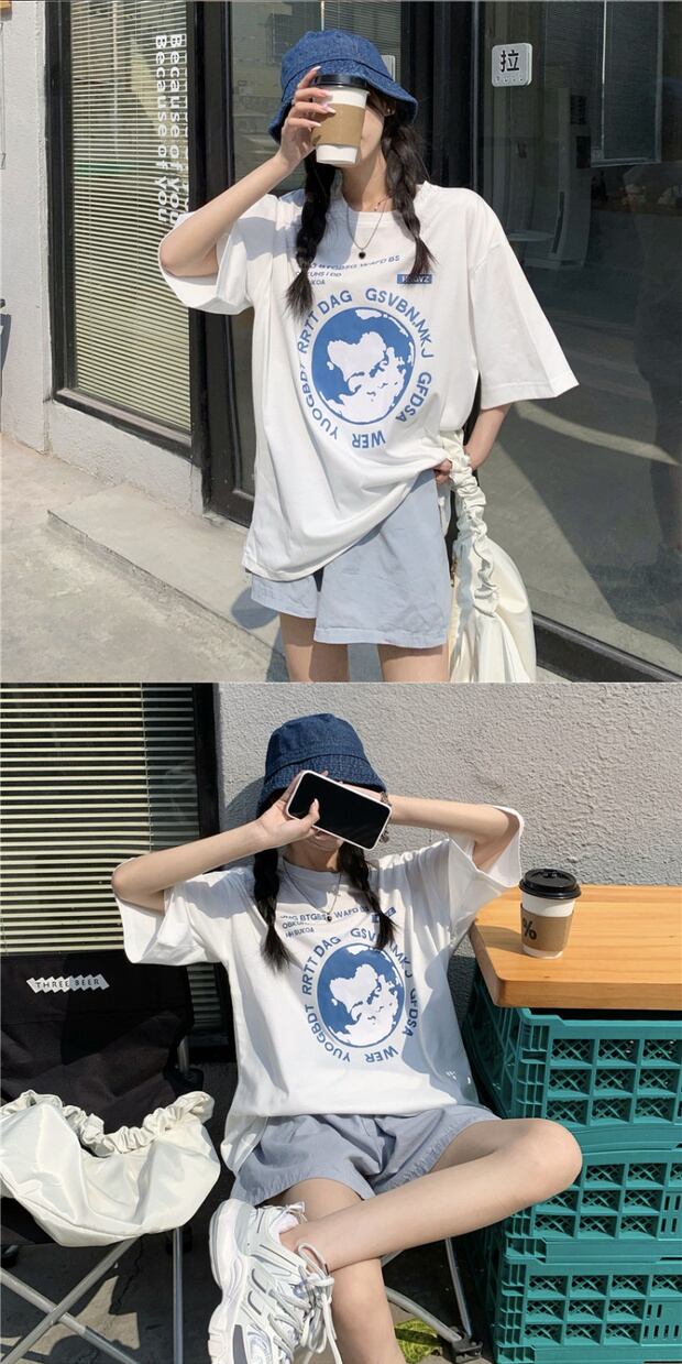 スタイルサマールーズTシャツ ロングラウンドネックカジュアル半袖スリーブ ショート ハーフスリーブ 夏物 Oネック ケッペル85714506009