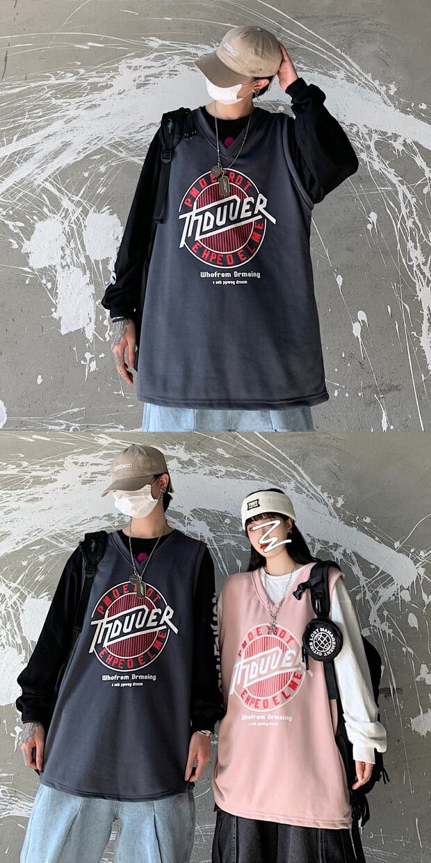 スタイルプリントレディーススプリングルーズカジュアルノースリーブ 大きめサイズ かわいい 春物 ケッペル23222202580