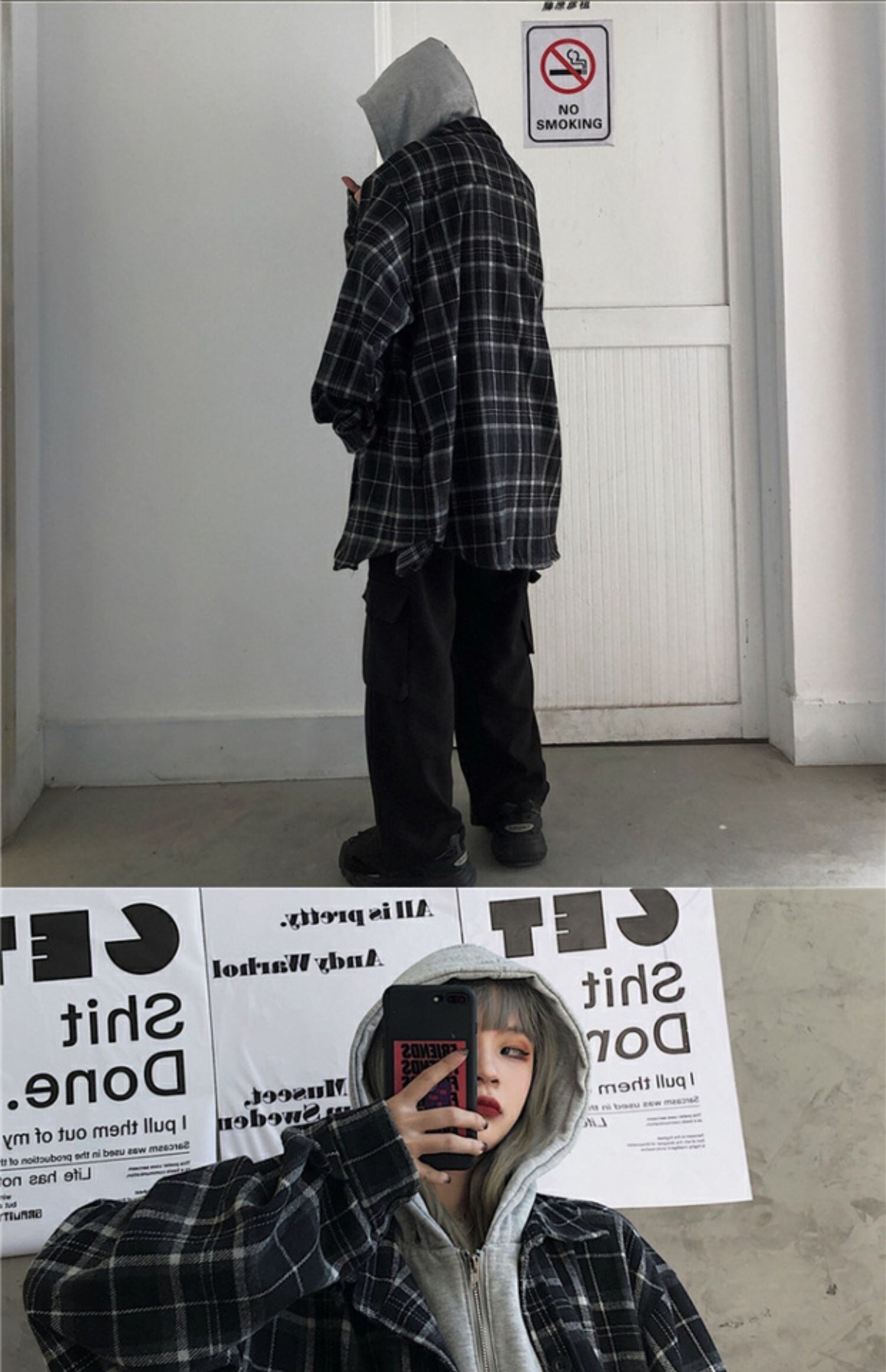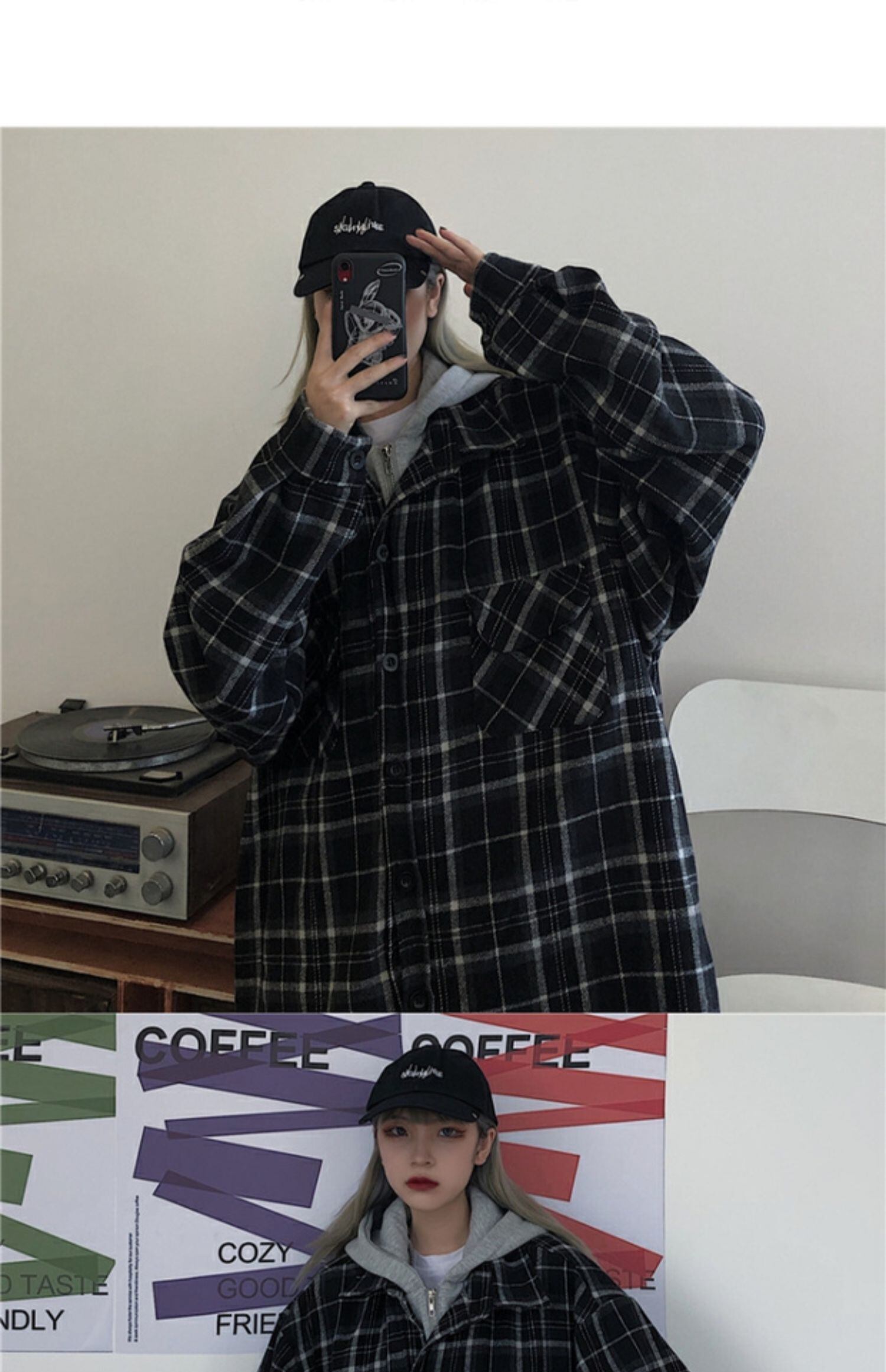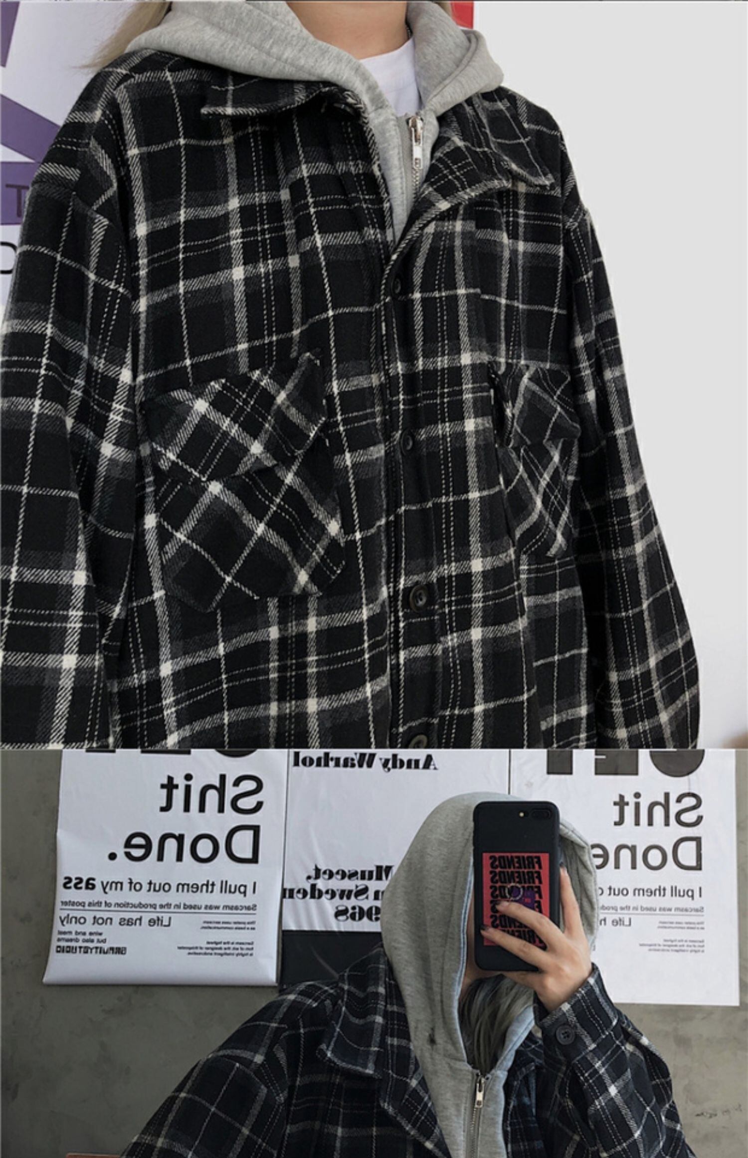 オータムウィンター格子柄ジャケット スタイルスタンダードフードトップス ルーズ レトロ ストリート 大きめサイズ かわいい 秋物 冬物 ケッペル53461868090