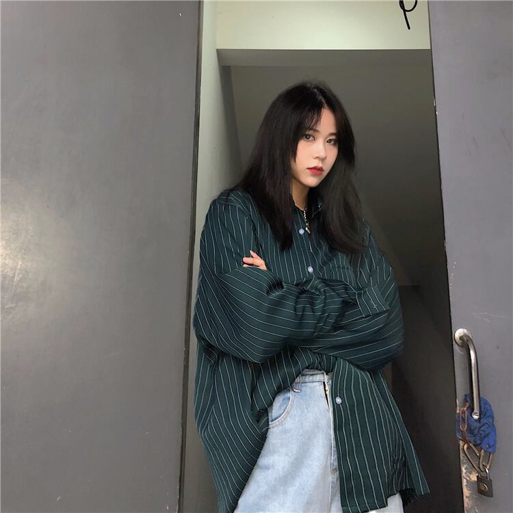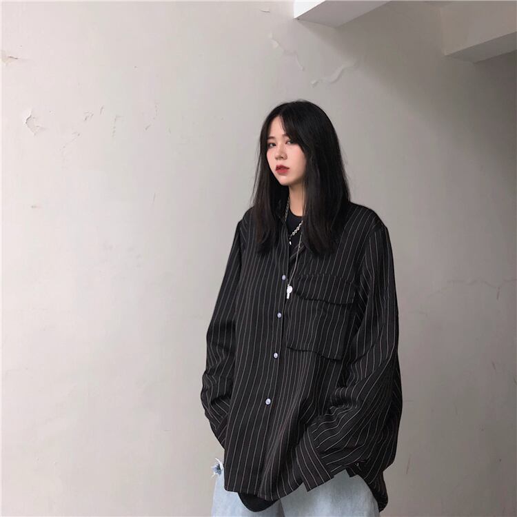 スタイルルーズストライプシャツ レディースカジュアルトップス 薄手ジャケット ロング かわいい ケッペル57192944413