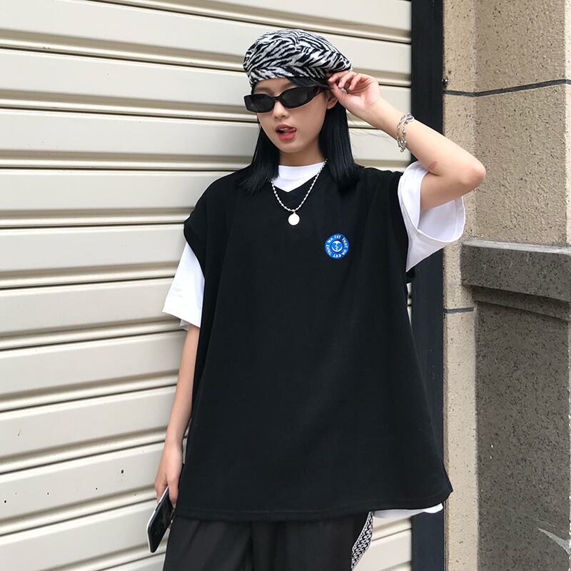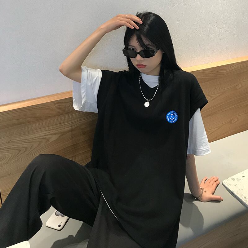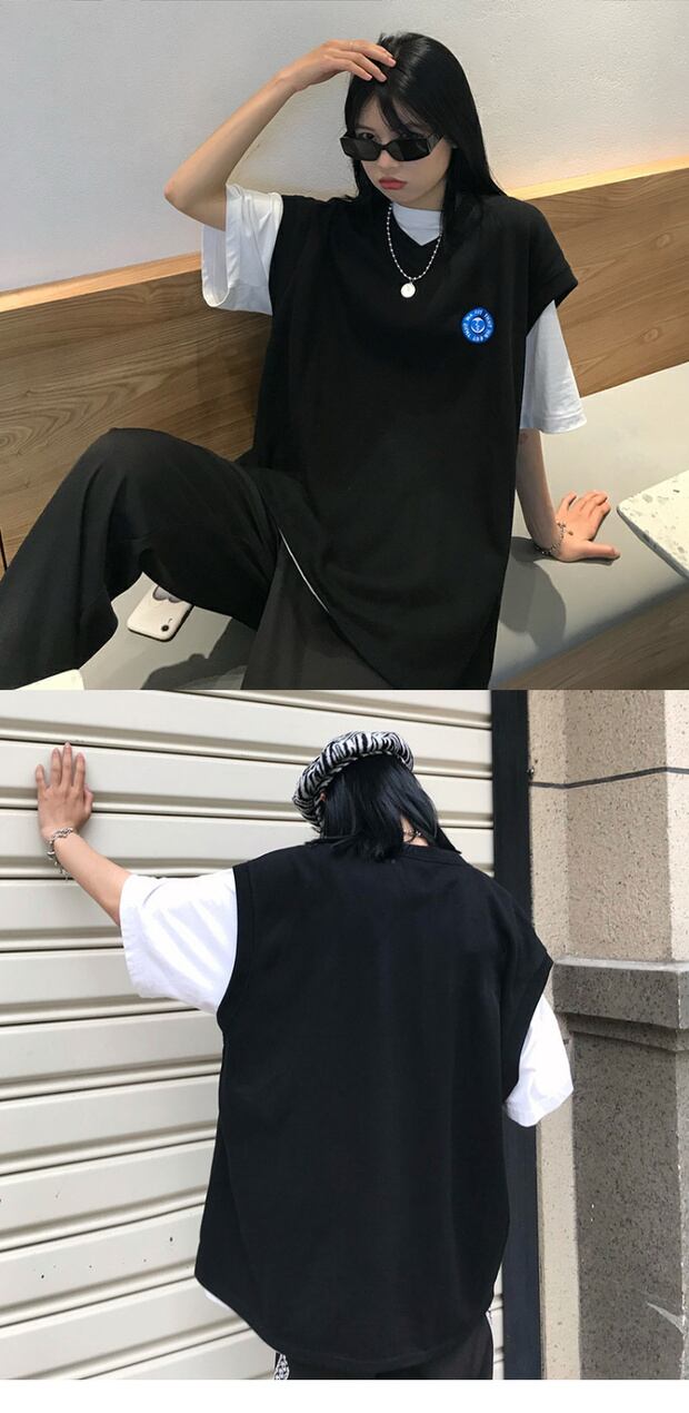 色:白いTシャツ,黒のベスト