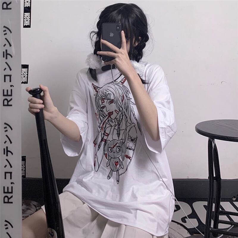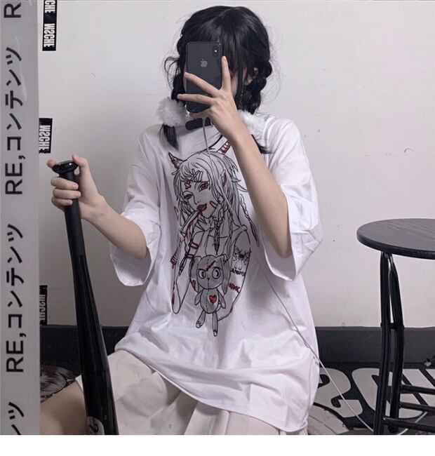 スタイルカジュアルTシャツ ダークプリントルーズレディース かわいい ケッペル53772064964