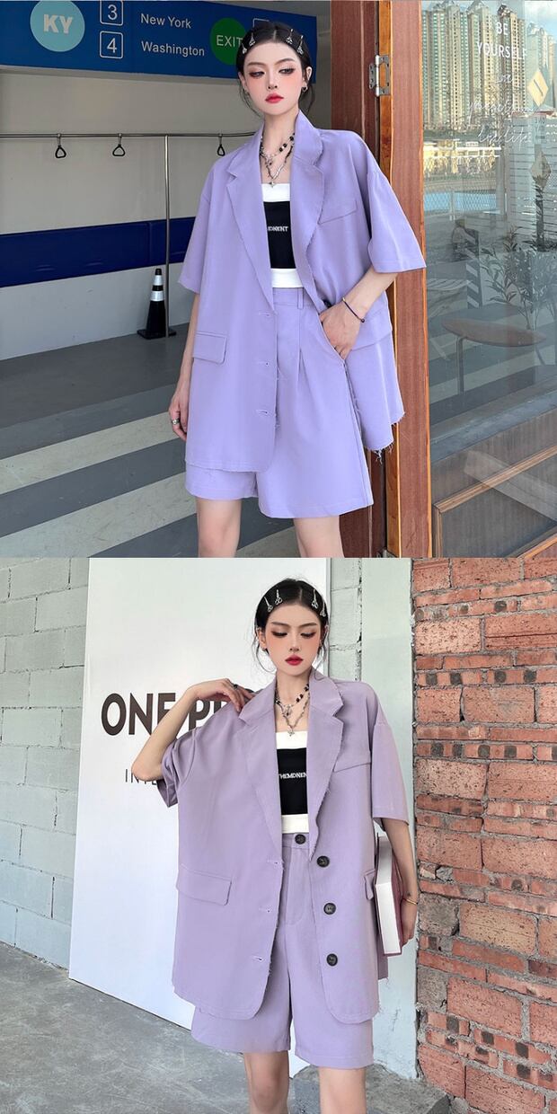 色:パープルショーツ,パープルトップ,パープルのセット
