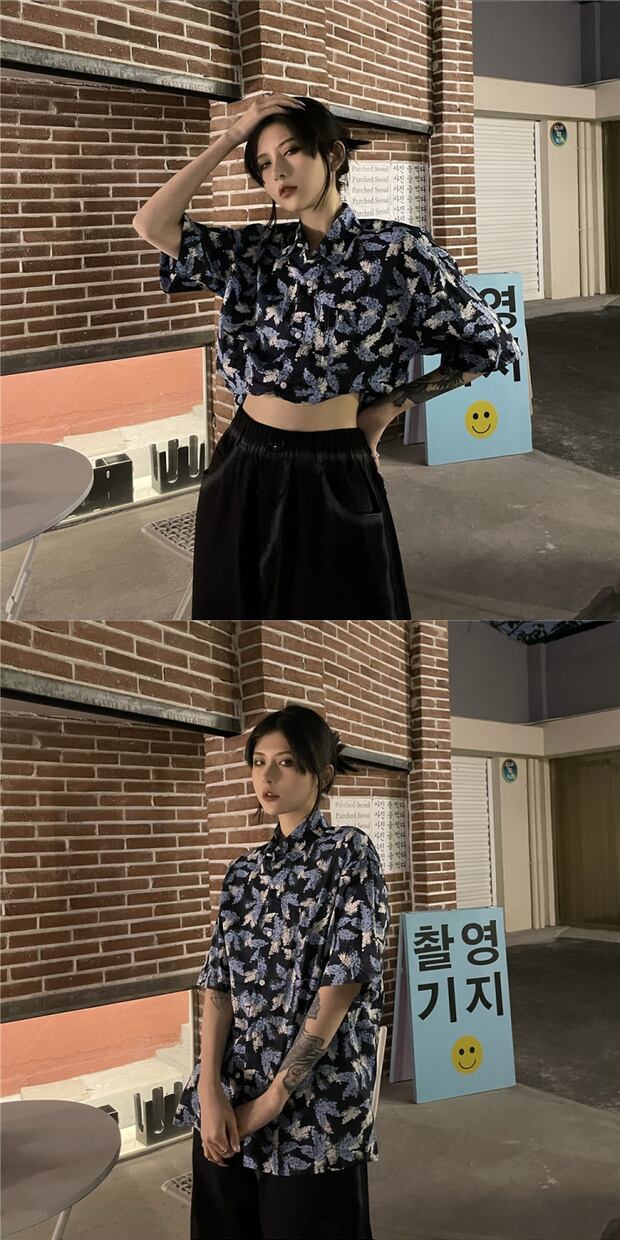 サマースタイルシャツ カジュアルフローラルルーズトップス ストリート 夏物 花柄 ケッペル12420120992
