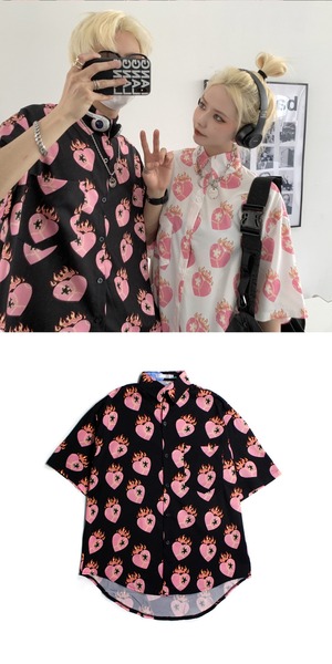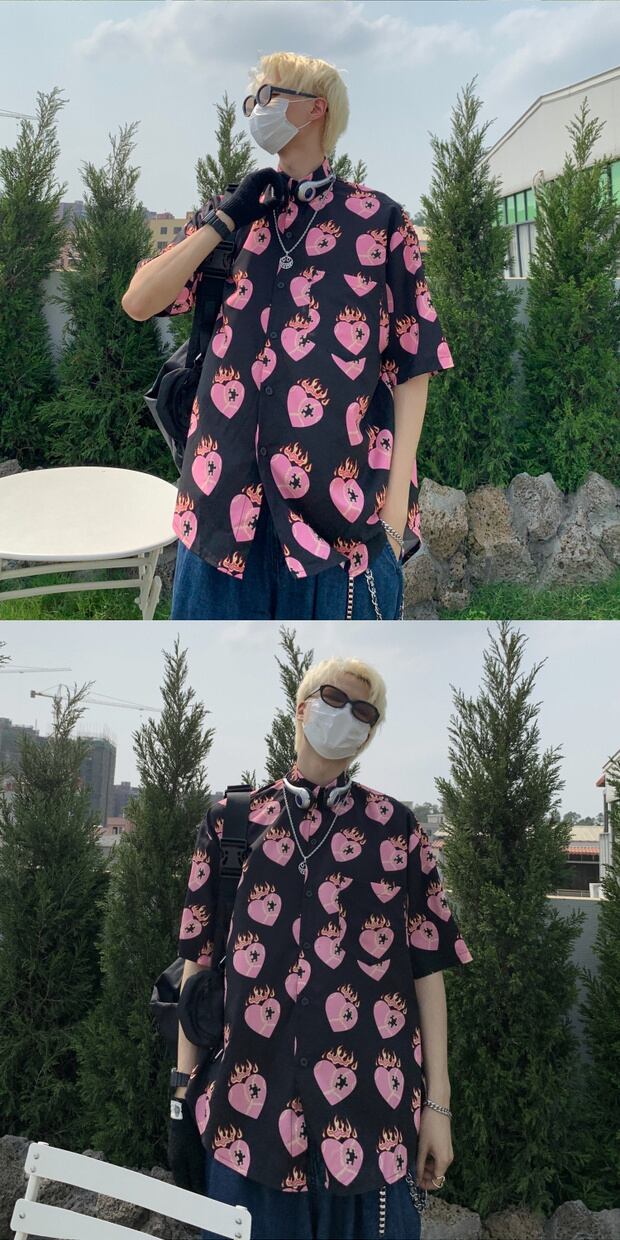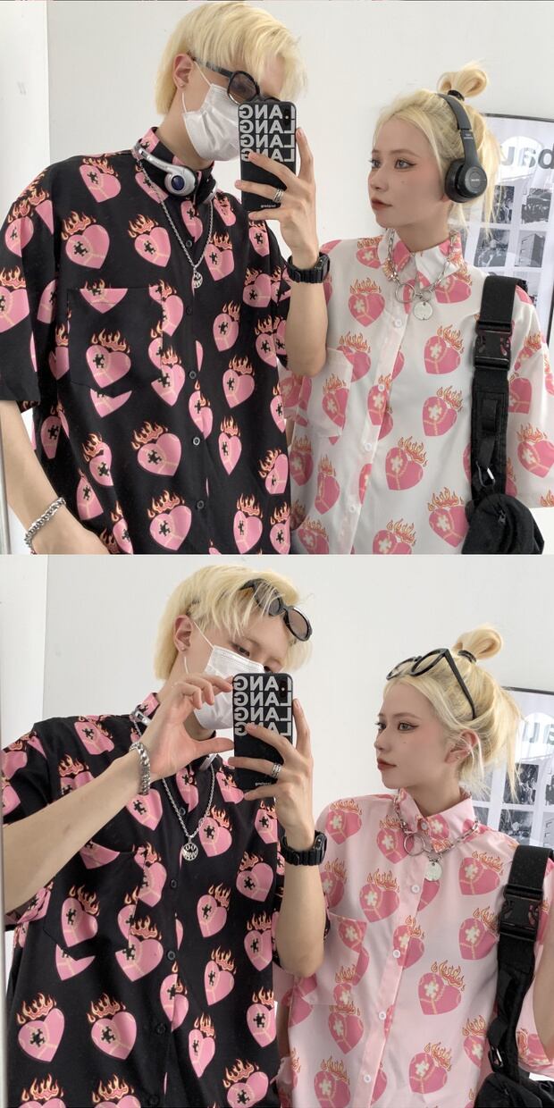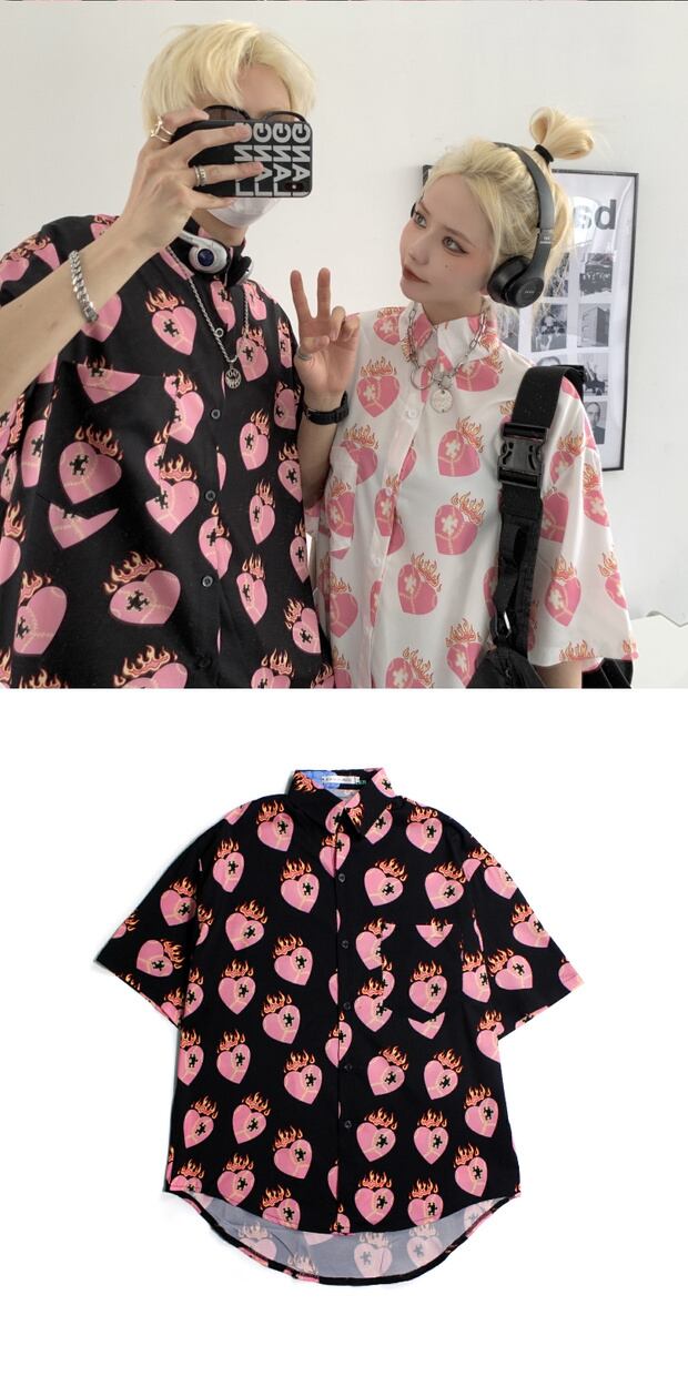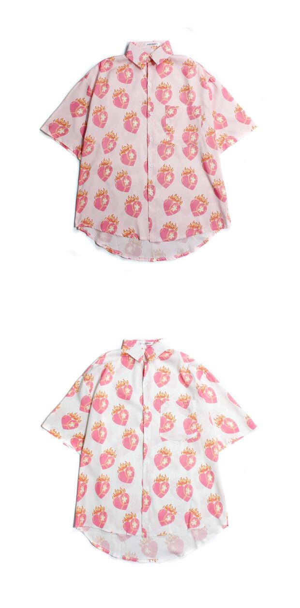 スタイルルーズシャツ スタンダードプリントカジュアルTシャツ サマー ピンク レトロ 夏物 ケッペル57095678914