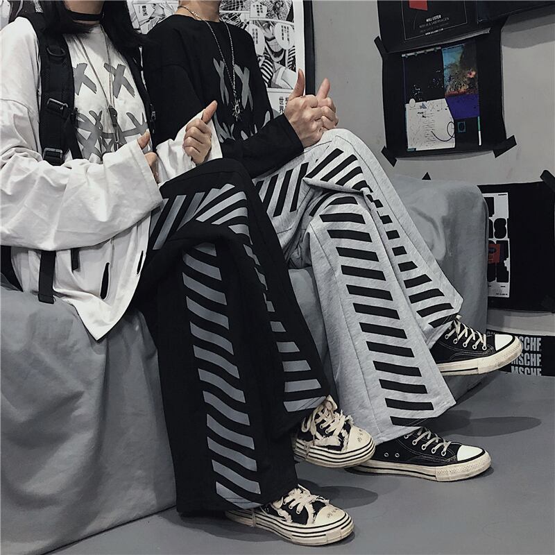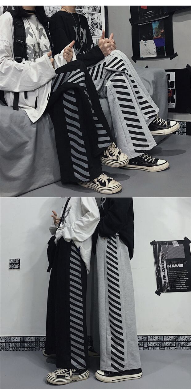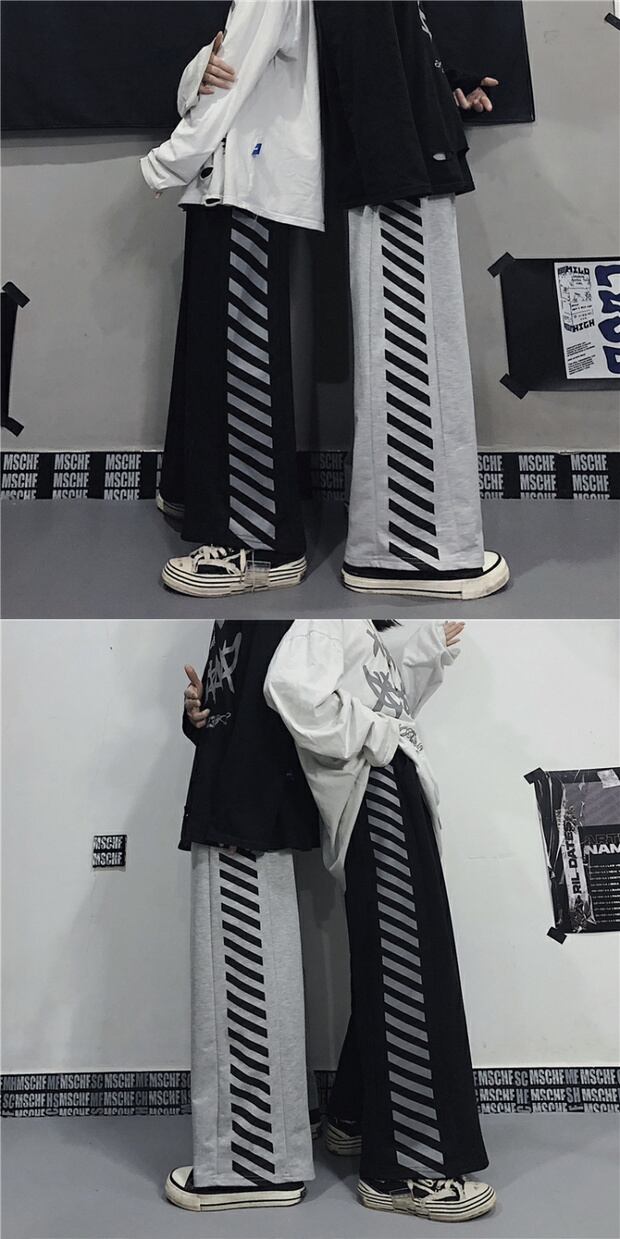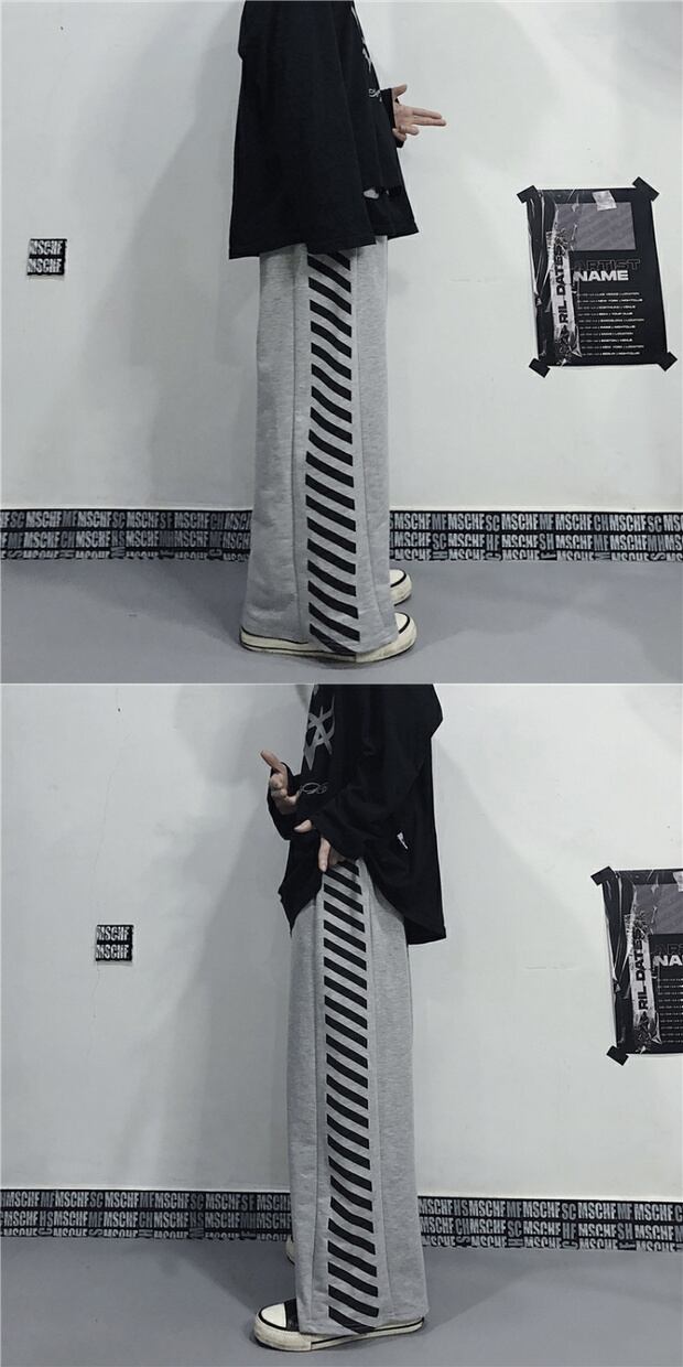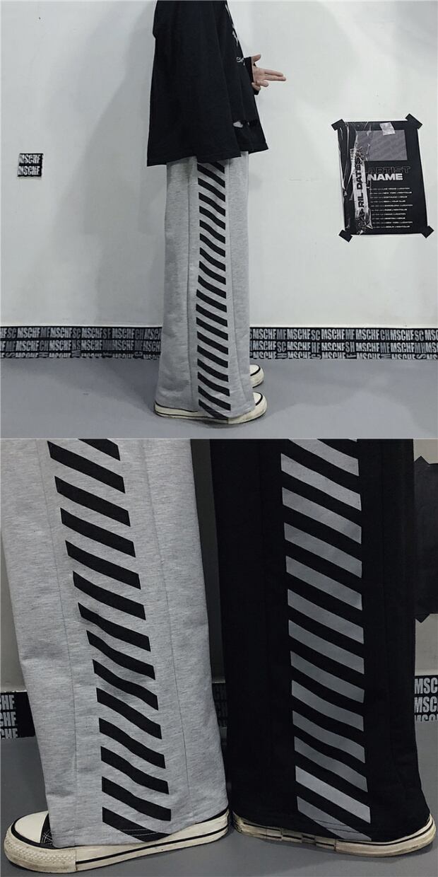 ダークスタイルスタンダードカジュアルパンツ ストライプハイウェストウェスト レトロ ストリート ステッチ ケッペル1354698572