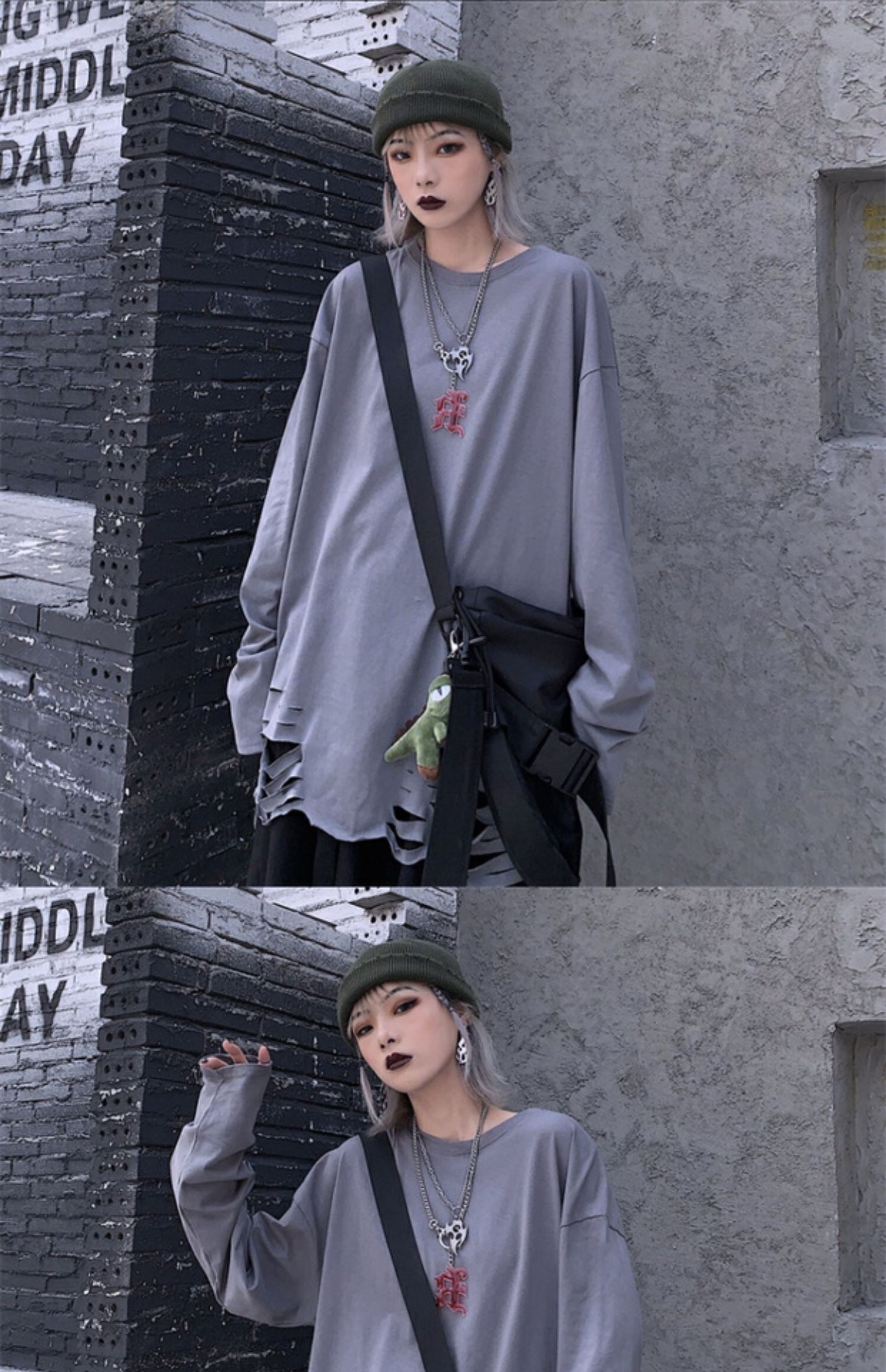 スプリングTシャツ シャツ スタイルダークブラックブラウス レディースカジュアル ストリート 大きめサイズ かわいい 春物 ケッペル84413741103