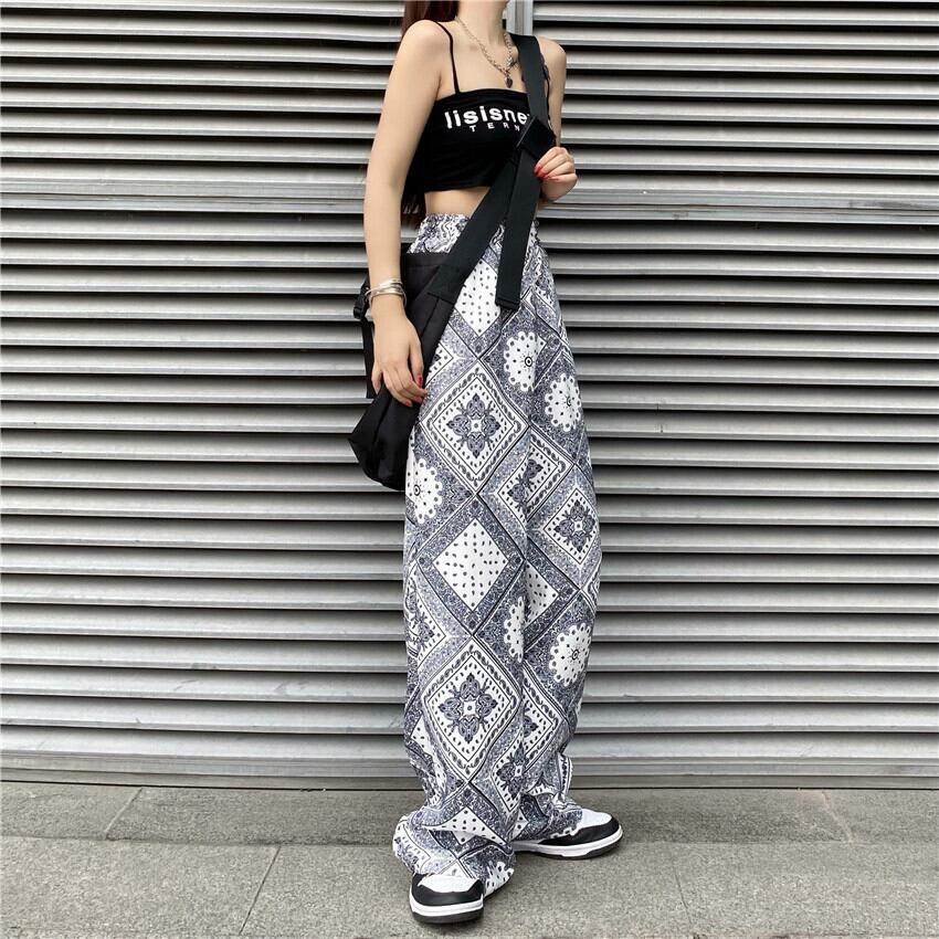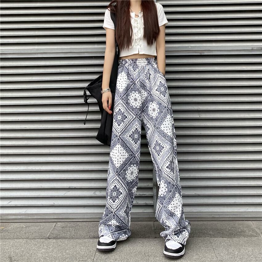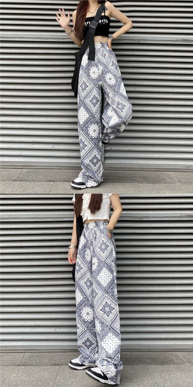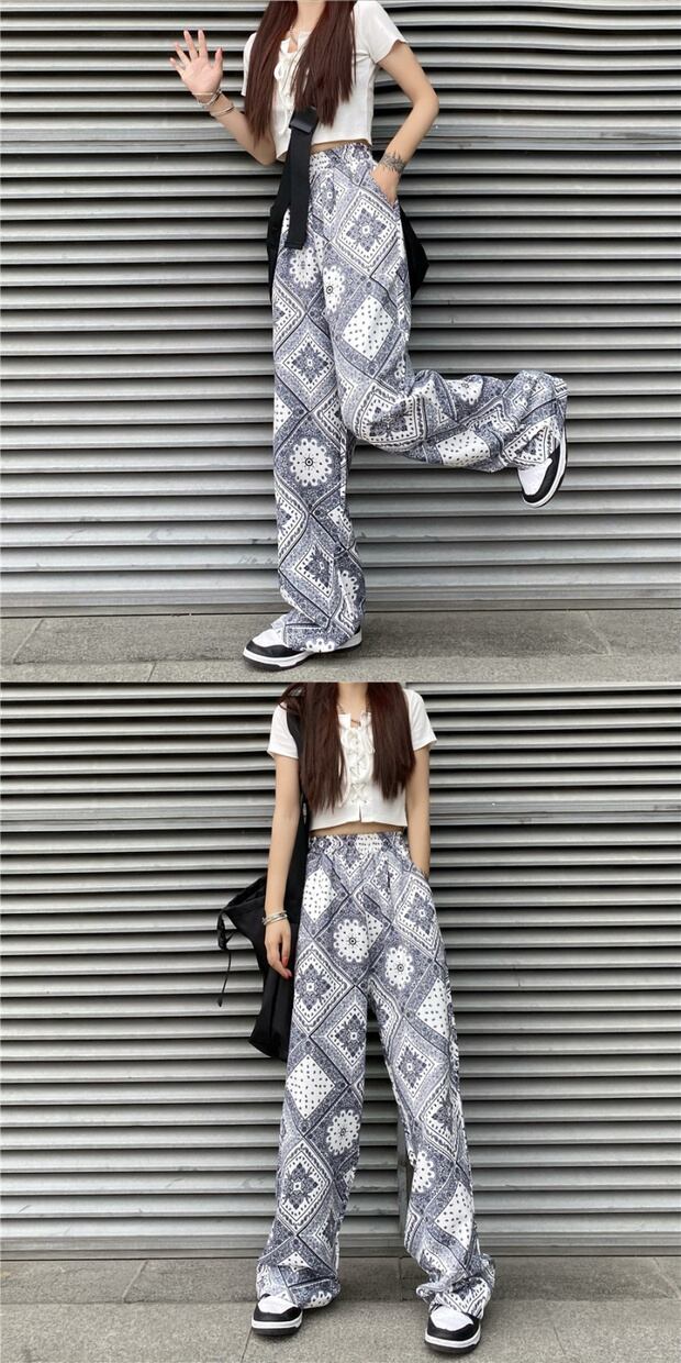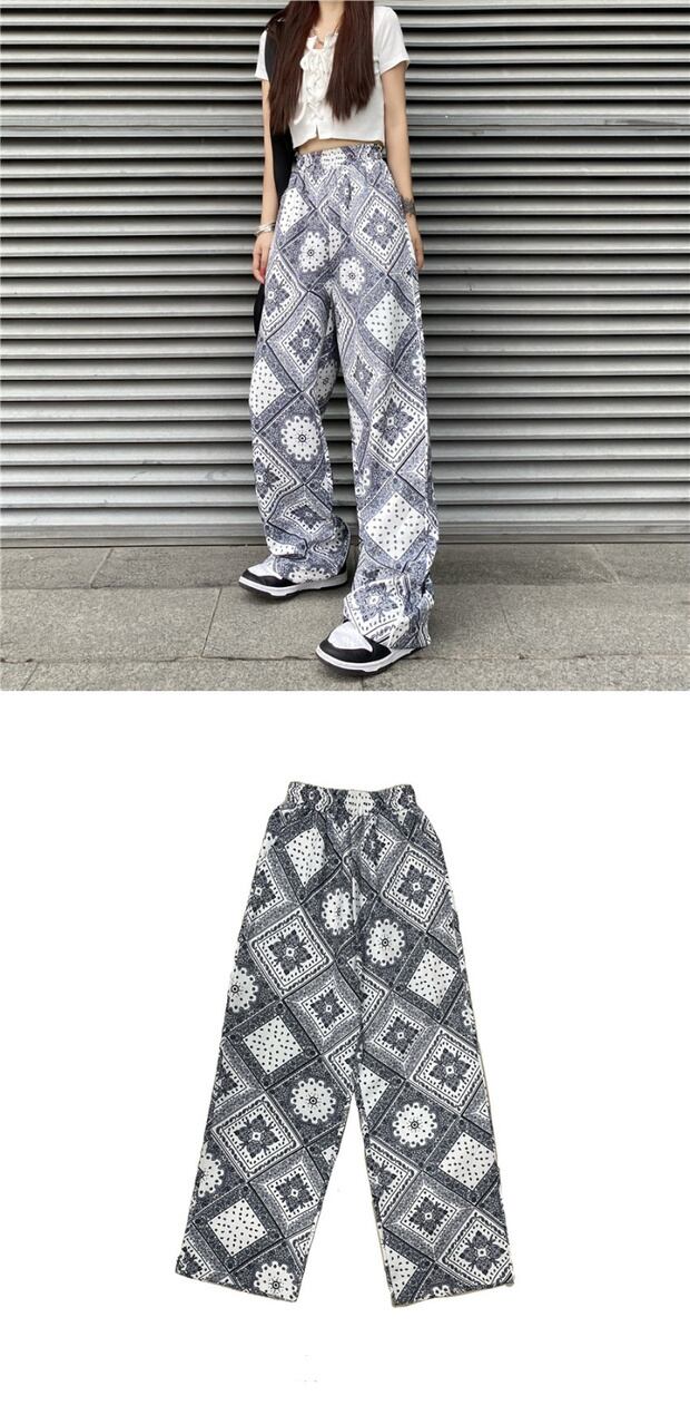 スタイルスタンダードプリントカジュアルパンツ ワイドレッグルーズ レトロ ストリート ワイドパンツ ケッペル17848066964