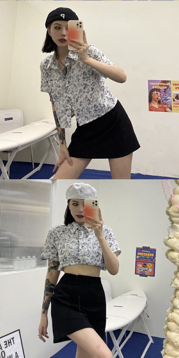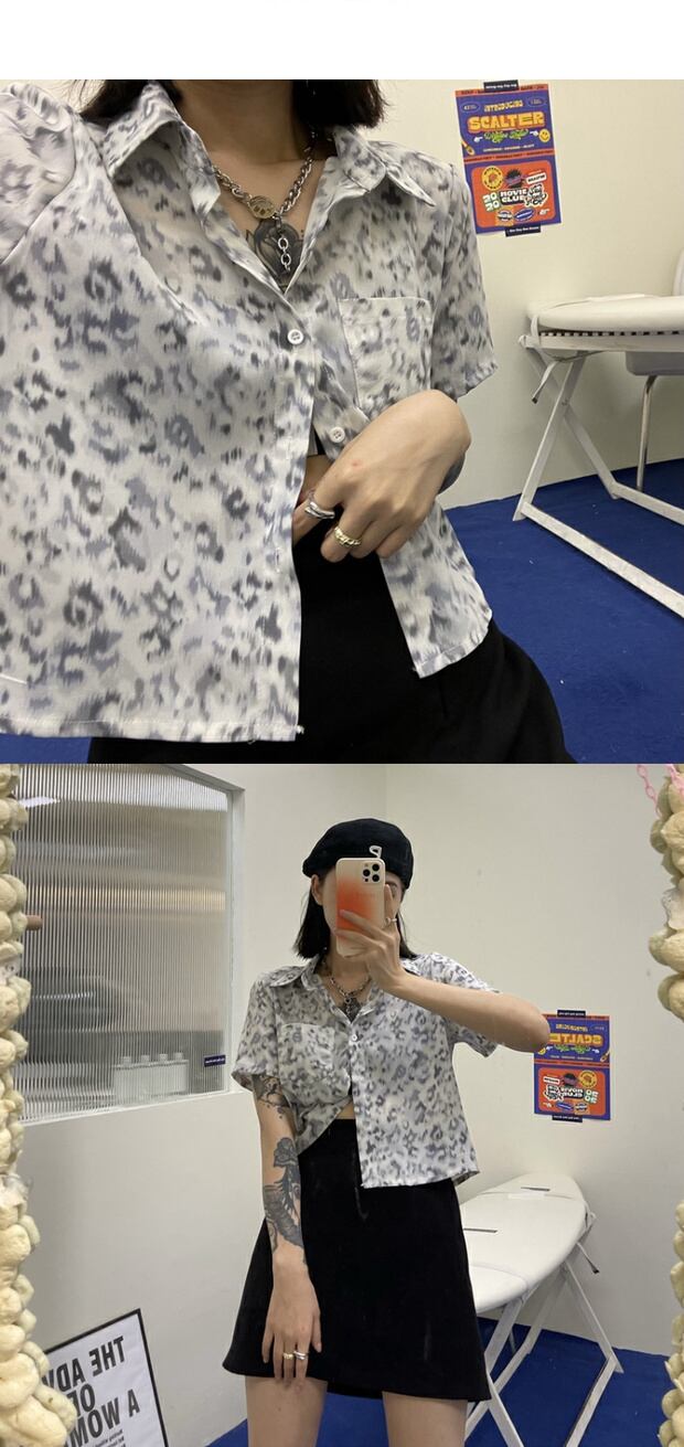 シフォンレオパードプリント柄シャツ レディースサマールーズ薄手 夏物 ケッペル74712927738