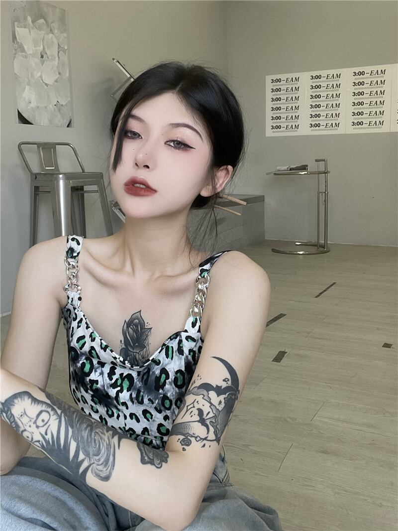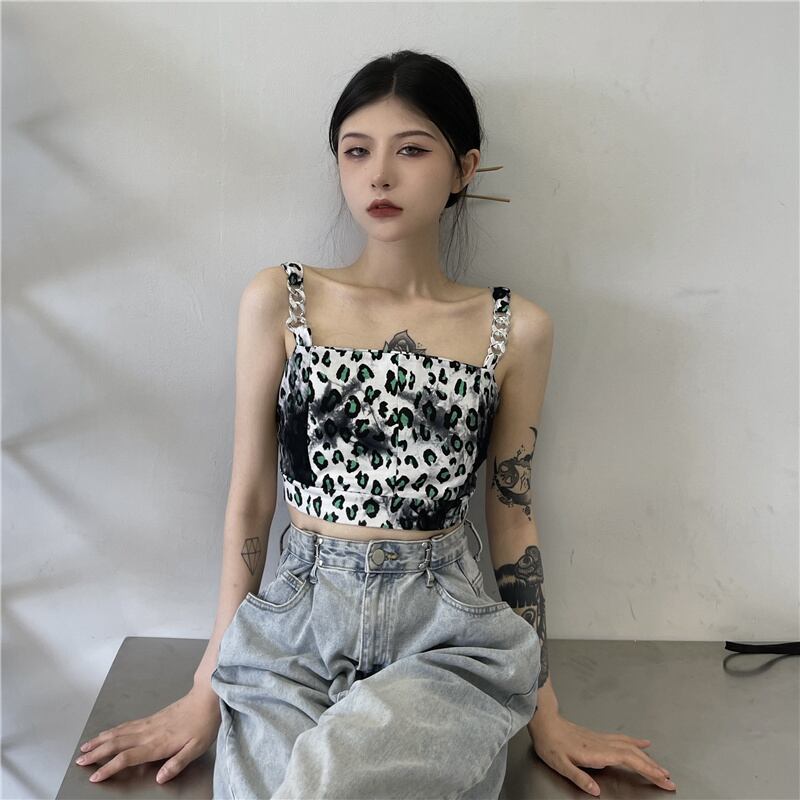 サマースタイルレオパードプリント柄ショートスリムトップス ストリート 夏物 ケッペル20739375246