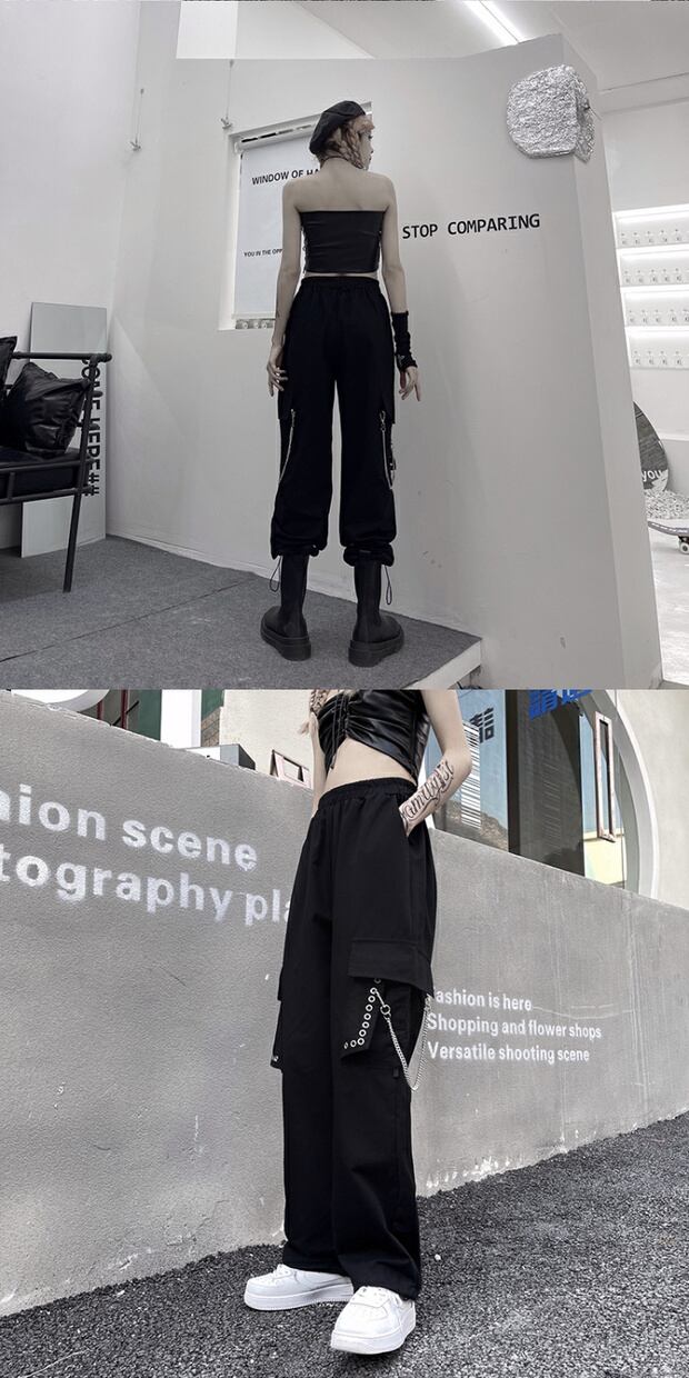 サマールーズカジュアルパンツ スタイルオーバーオール レディースハイウェストウェストワイドレッグ ストリート かわいい 夏物 ワイドパンツ ケッペル82597848269