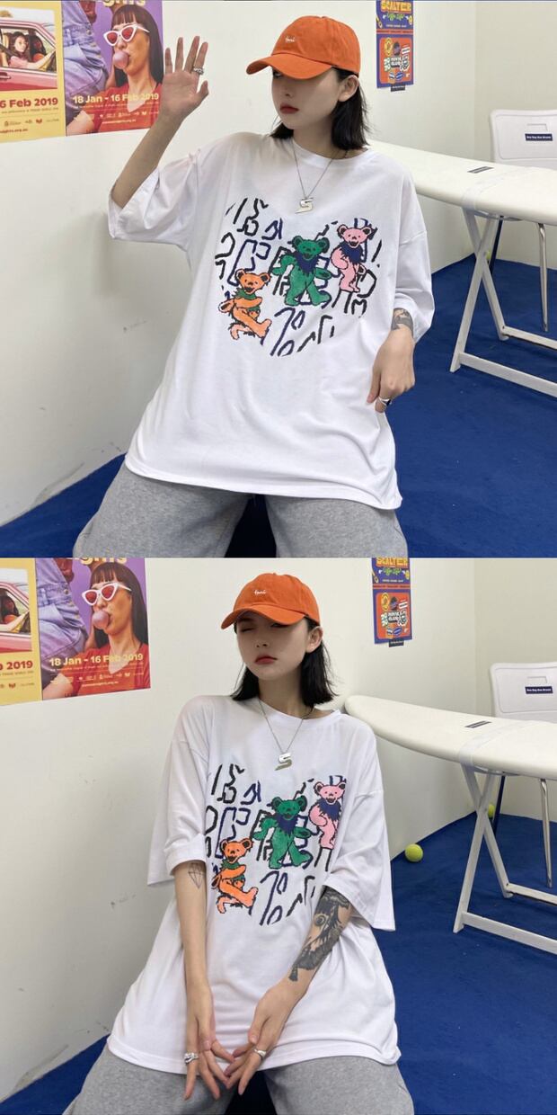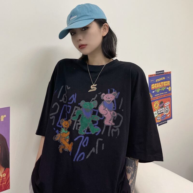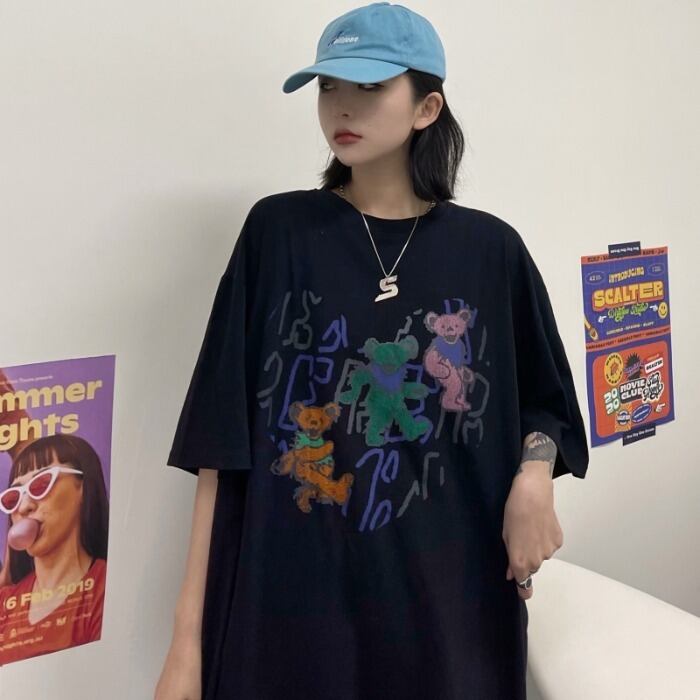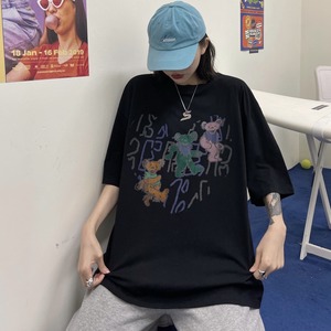 ダークサマールーズスタイルロングプリントTシャツ レディーストップス ストリート 夏物 ケッペル95723801205