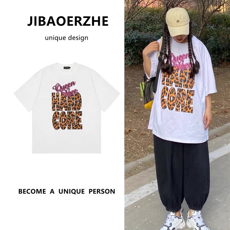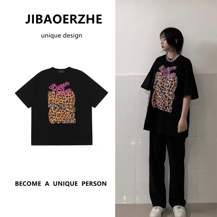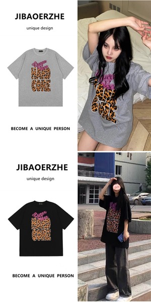 ルーズラウンドネックシャツ レオパードプリント柄Tシャツ レディース Oネック ケッペル21437313562