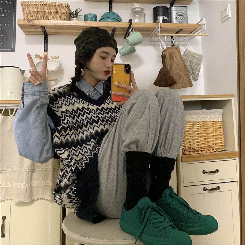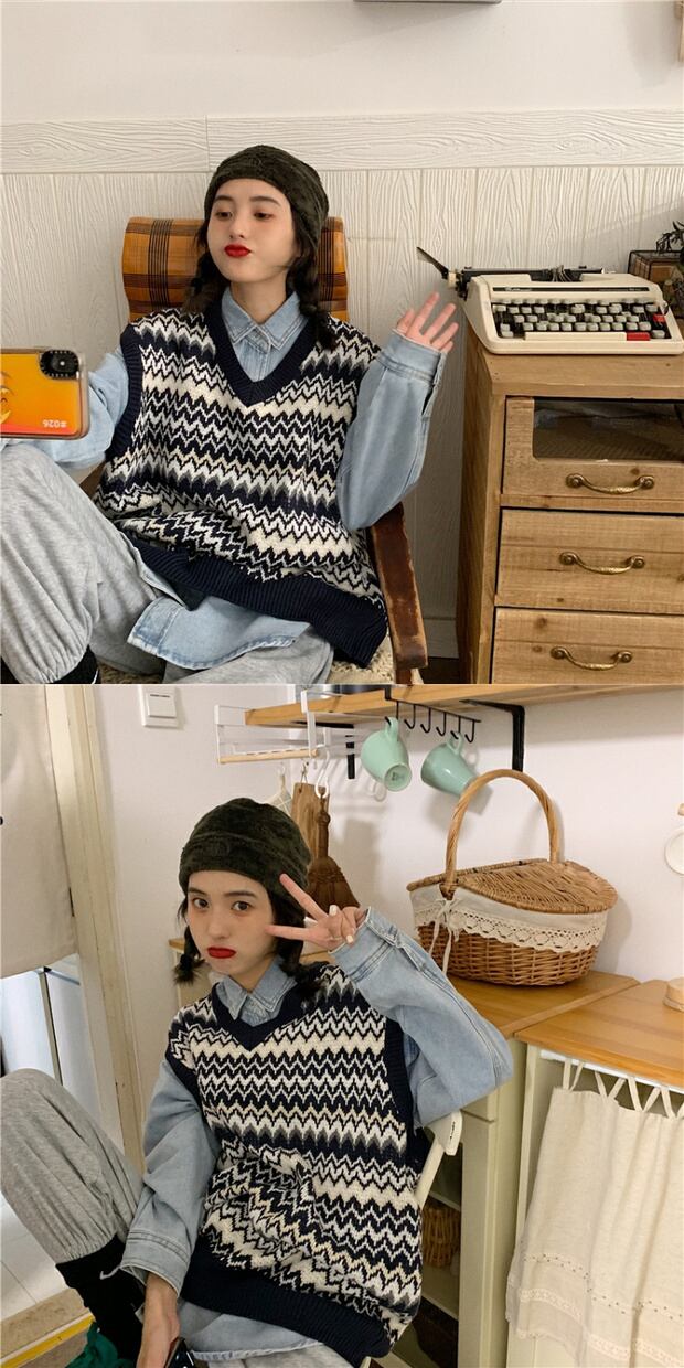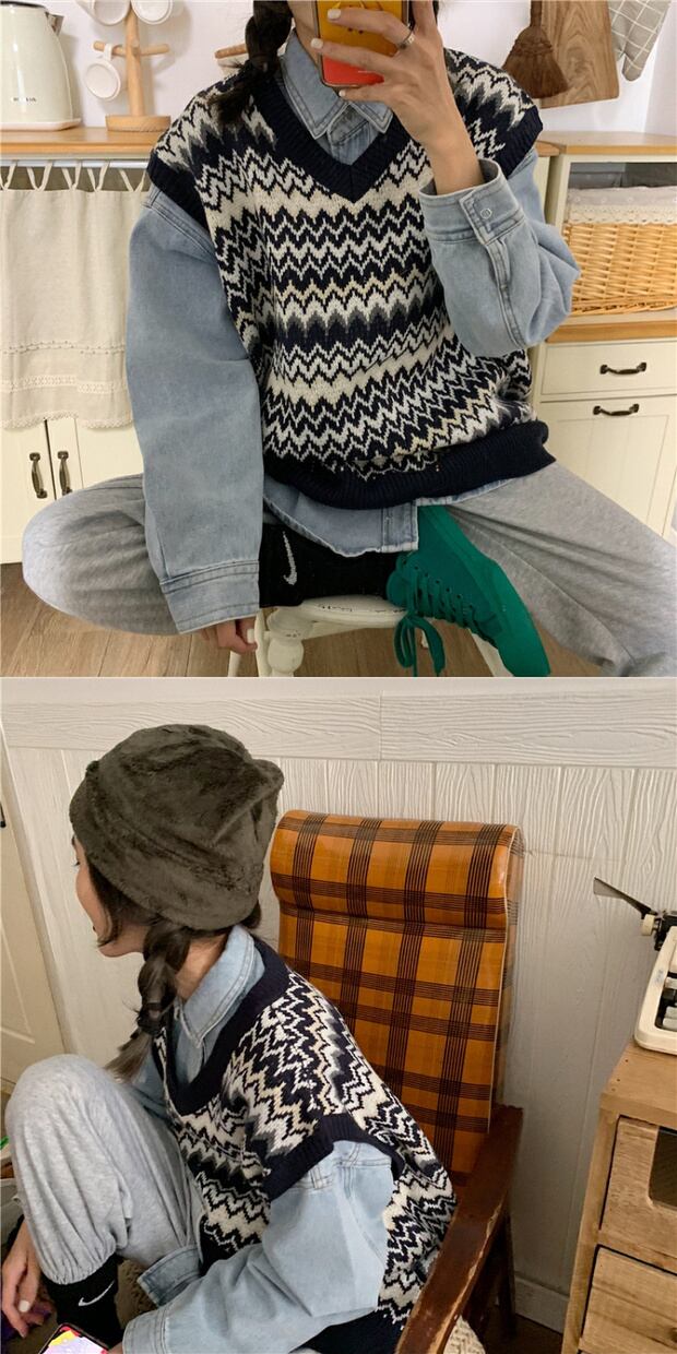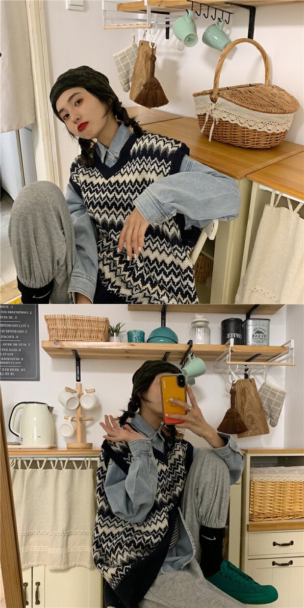 オータムカジュアルルーズシャツ ノースリーブニットウール 秋物 ケッペル53959897453