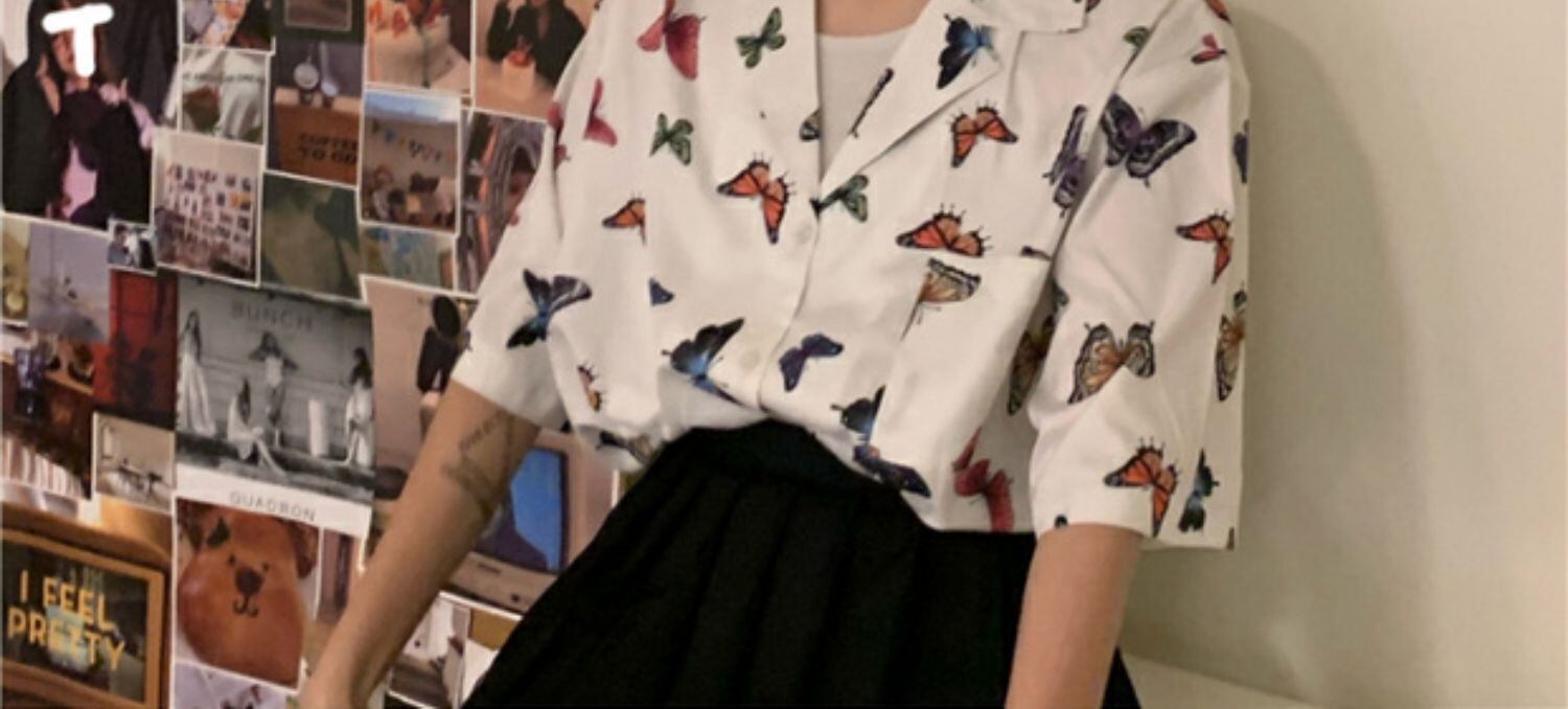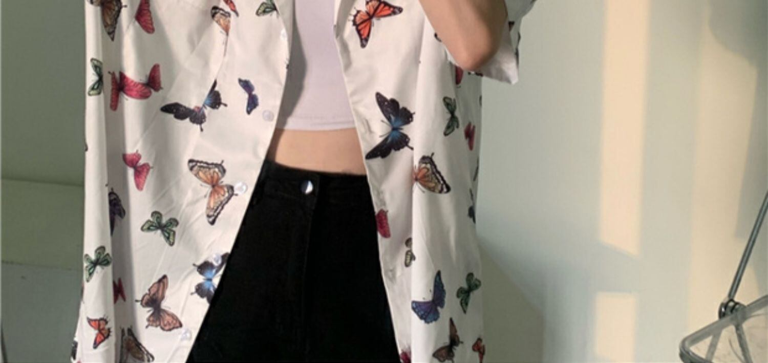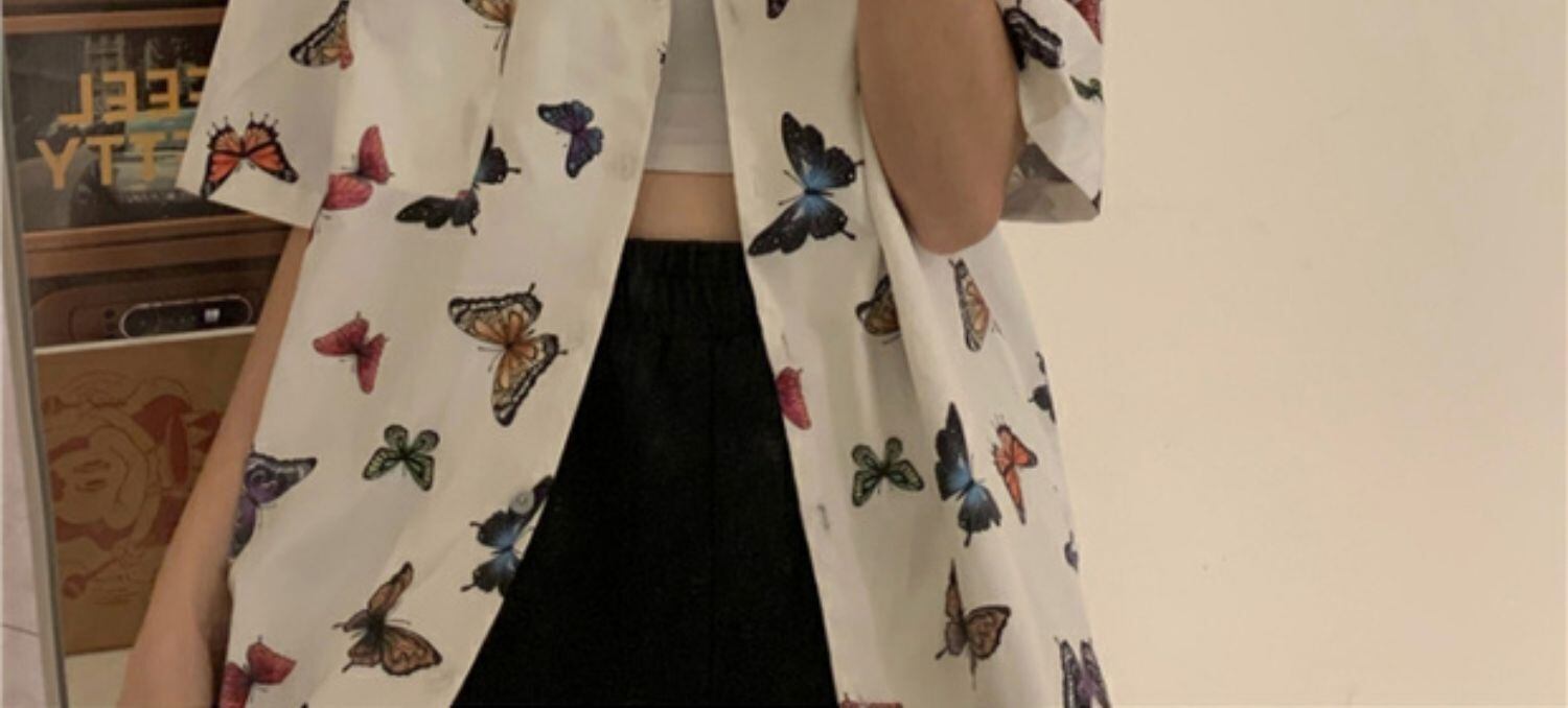 サマーButterflyデザイン プリント柄シャツ スタイルカジュアルカーディガンルーズ 夏物 ケッペル84284102541