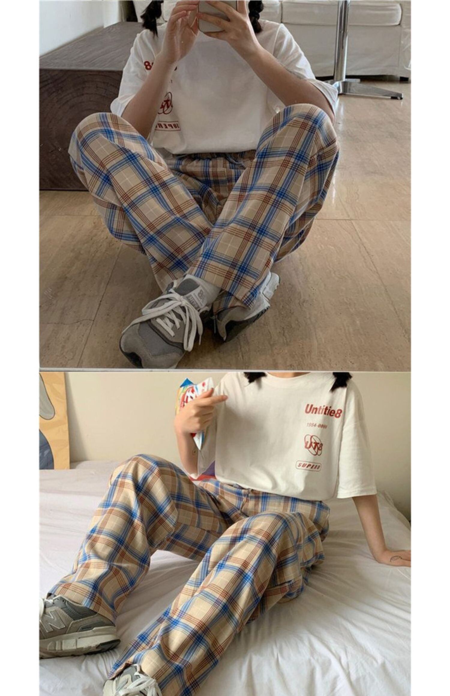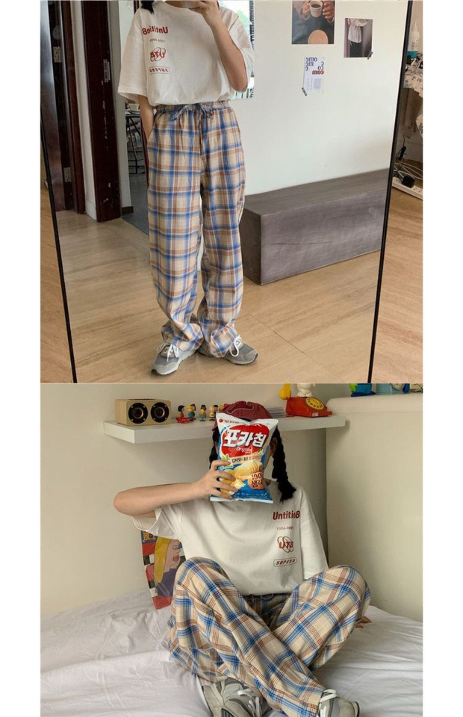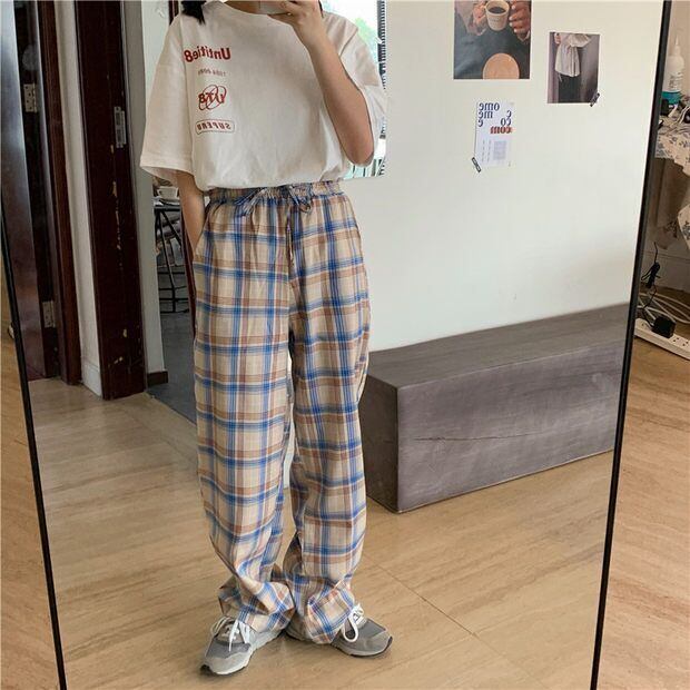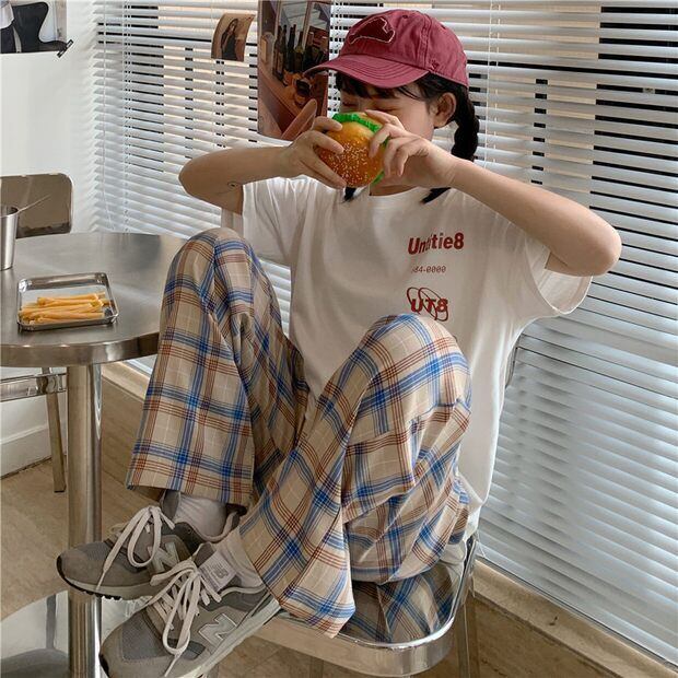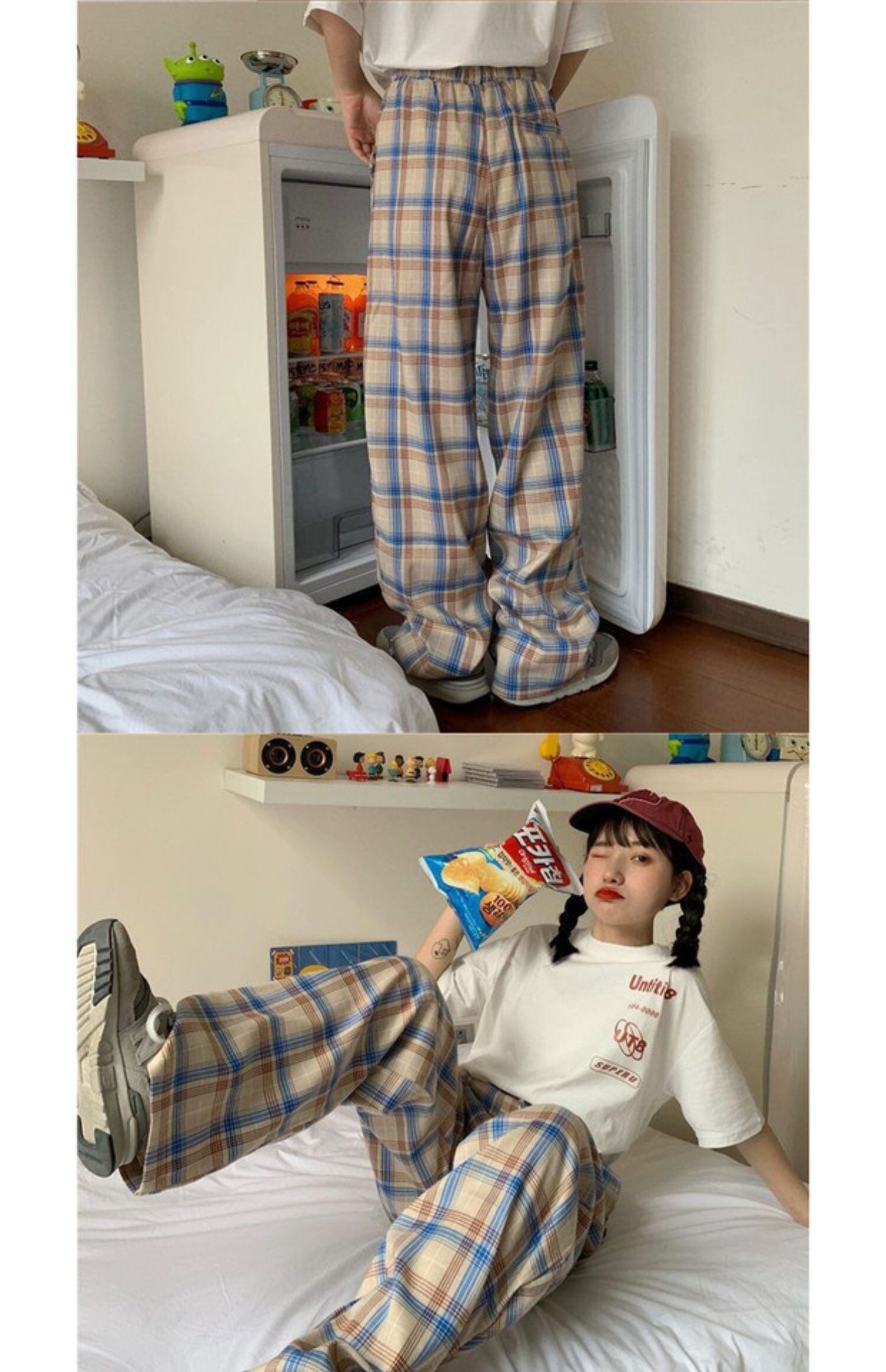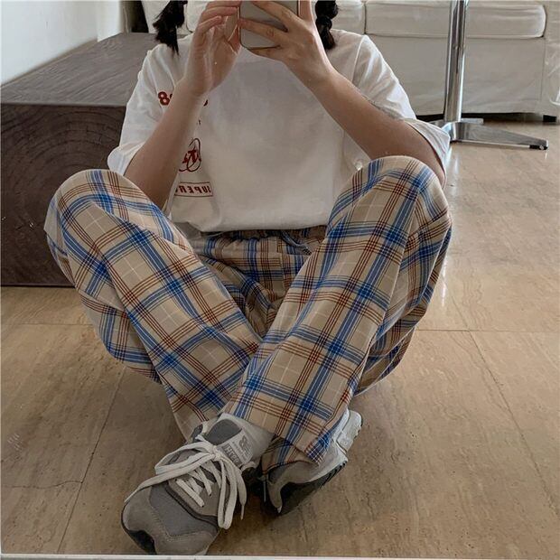 スプリングスタンダードカジュアルパンツ ルーズ格子柄レディースハイウェストウェストギャザー レトロ 春物 ケッペル17229891798