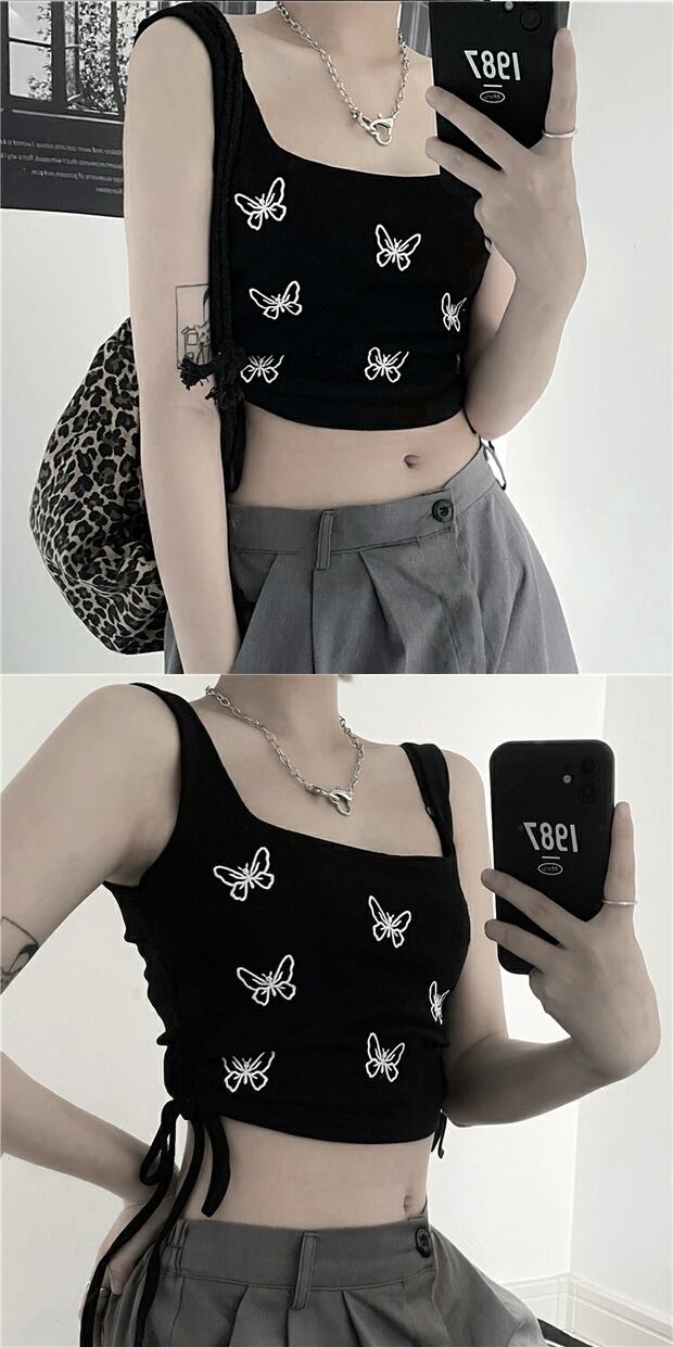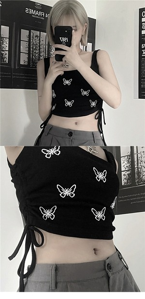 サマーショートダークブラックベルト クロップトップ トップス 夏物 ハーネス ケッペル92591388210