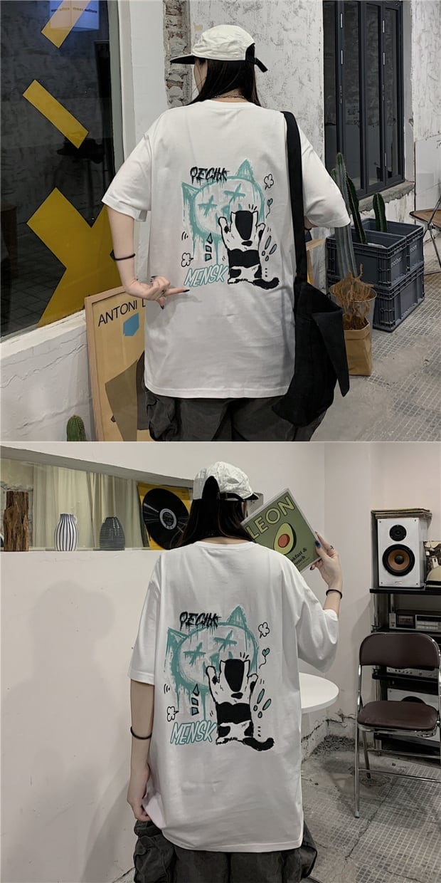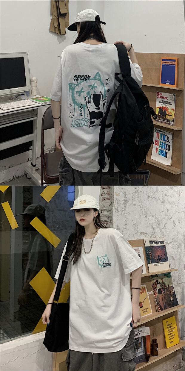 スタイルルーズカジュアルプリント柄シャツ レディースTシャツ コットン ストリート かわいい ピュア ケッペル62841167397