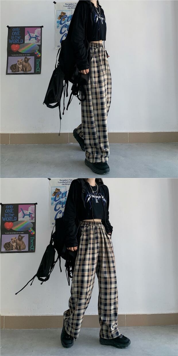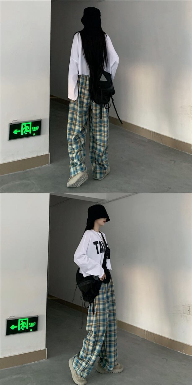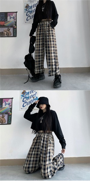 ルーズカジュアルパンツ スプリングスタンダード格子柄 レトロ 春物 ケッペル43509443982