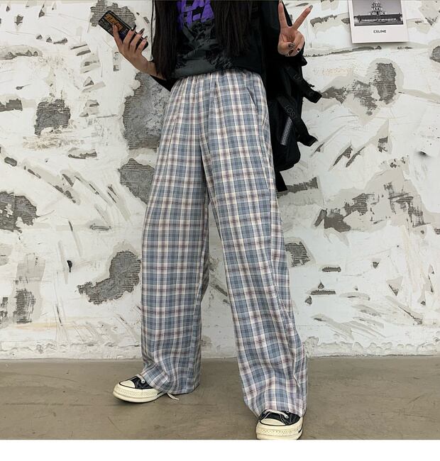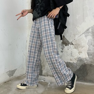 スプリングサマールーズ格子柄パンツ 薄手カジュアルハイウェスト 春物 夏物 ケッペル37696574521
