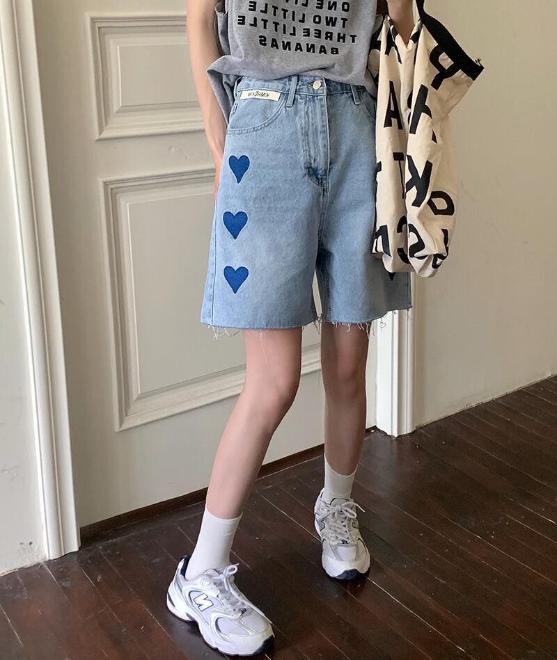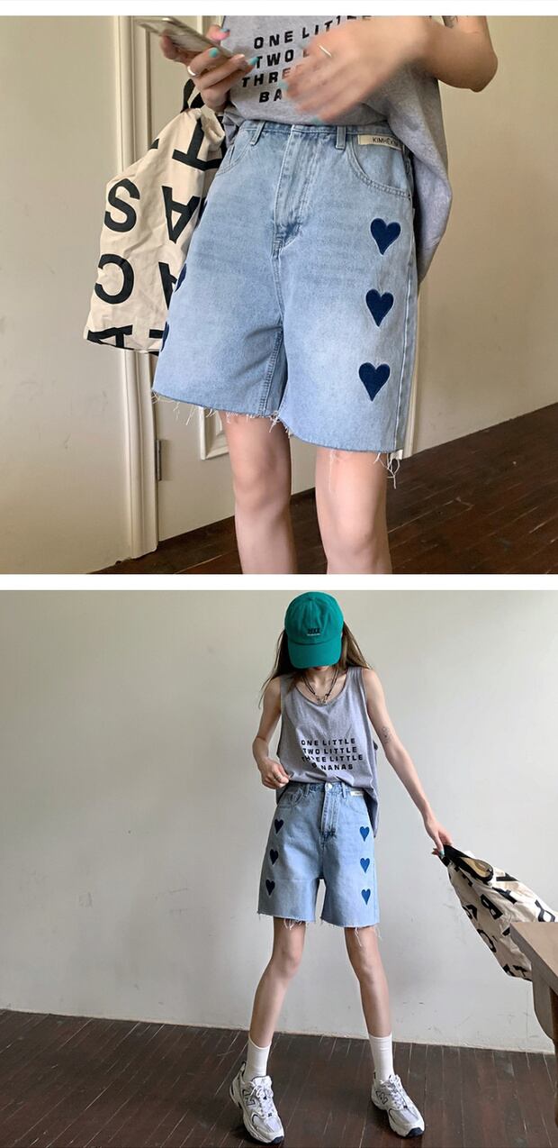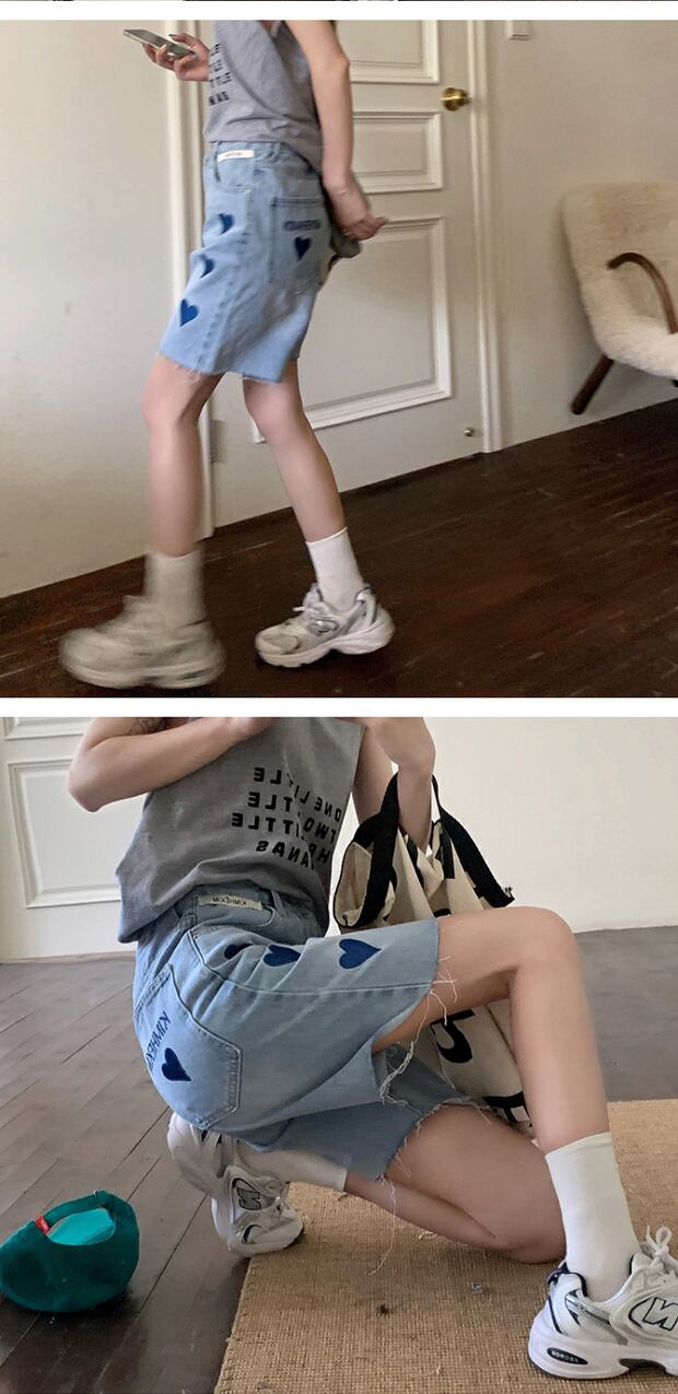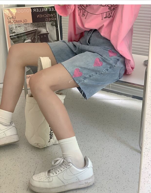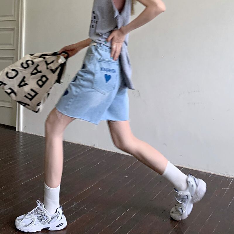 ルーズジーンズ スタンダードカジュアルパンツ 刺繍ハイウェストウェストショーツ レトロ ブルマー ケッペル95714913921