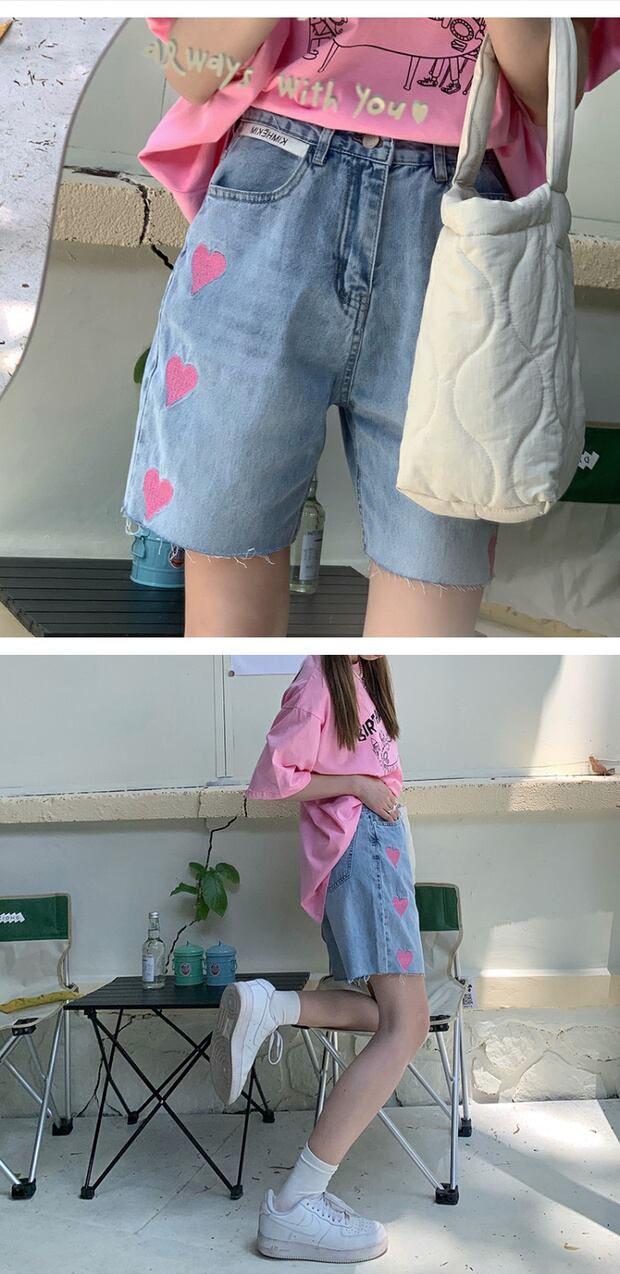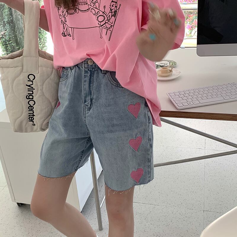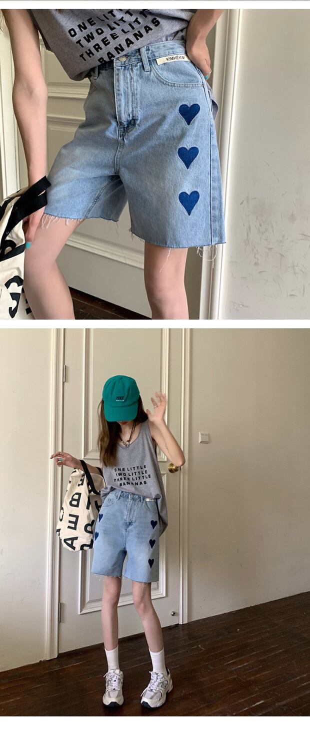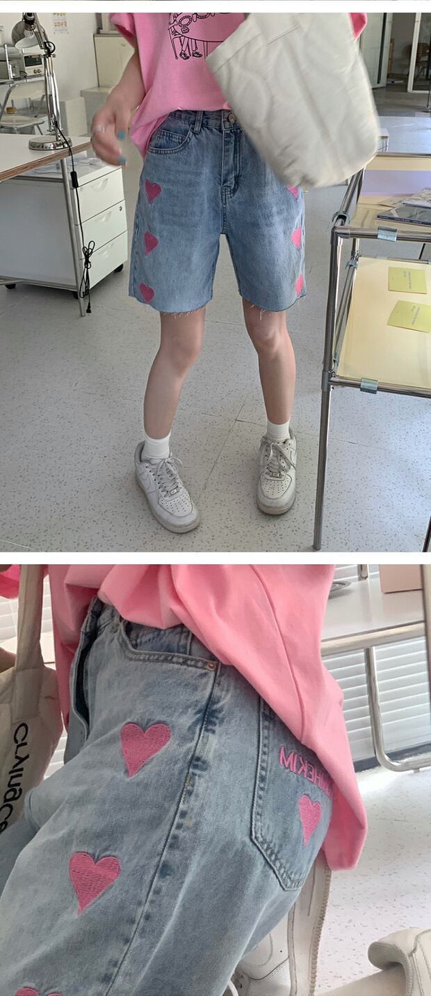 ルーズジーンズ スタンダードカジュアルパンツ 刺繍ハイウェストウェストショーツ レトロ ブルマー ケッペル95714913921