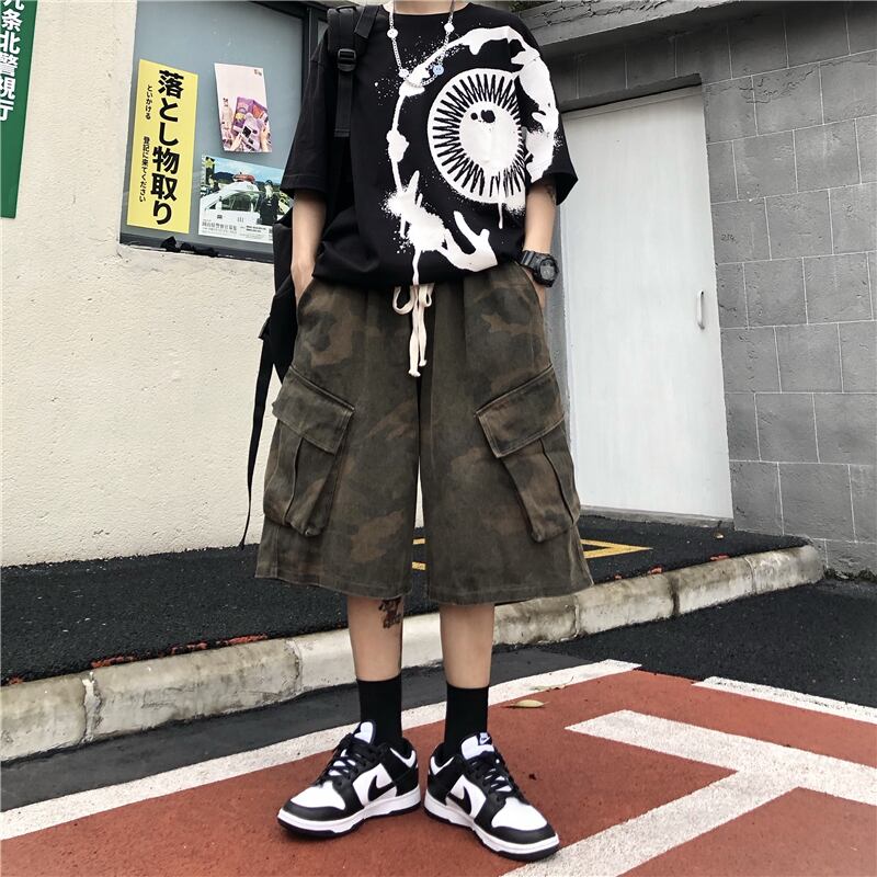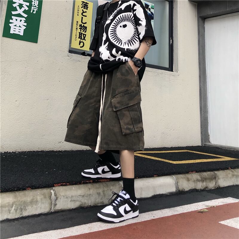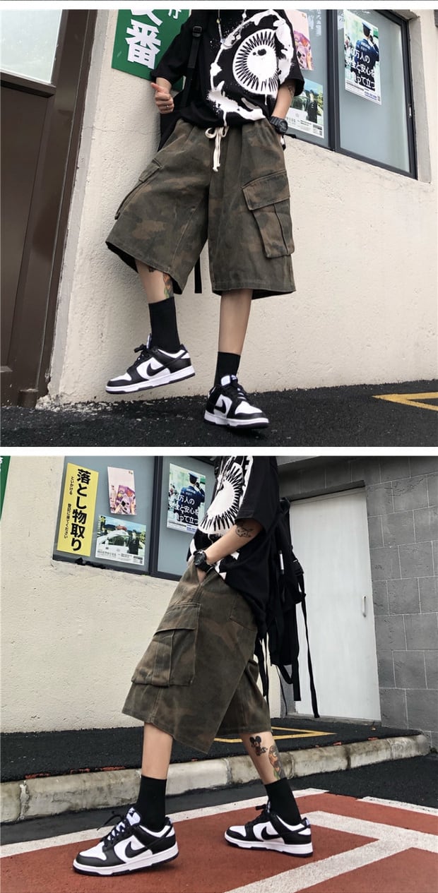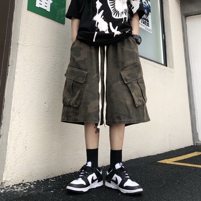 迷彩柄オーバーオール ショーツ レディーススタンダードルーズパンツ レトロ ストリート かわいい ブルマー ケッペル77278381536
