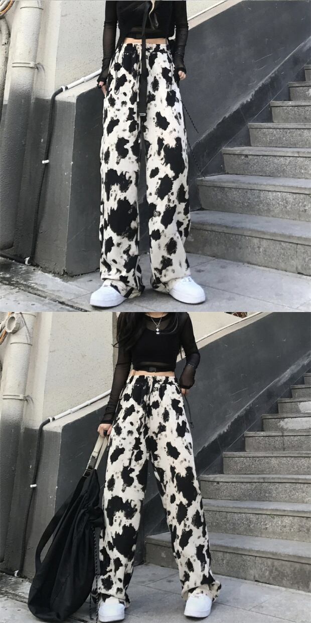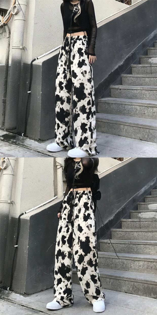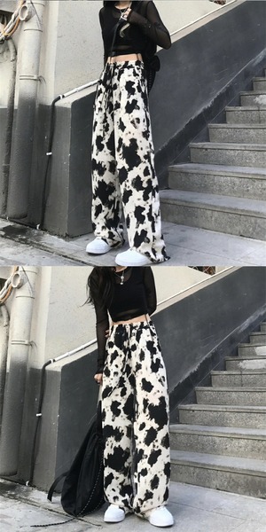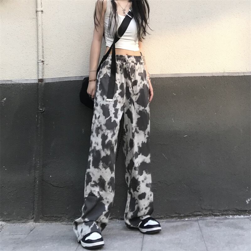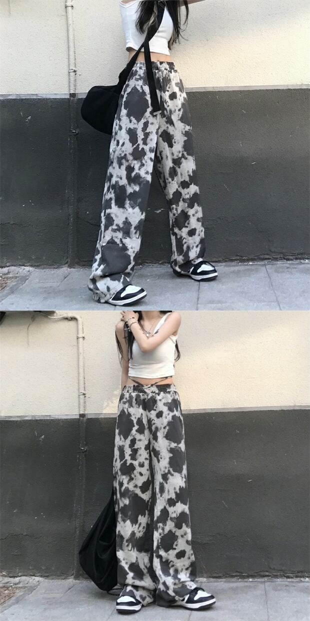 カジュアルパンツ レディースサマープリントハイウェストウェストルーズ薄手 夏物 ケッペル8484618497