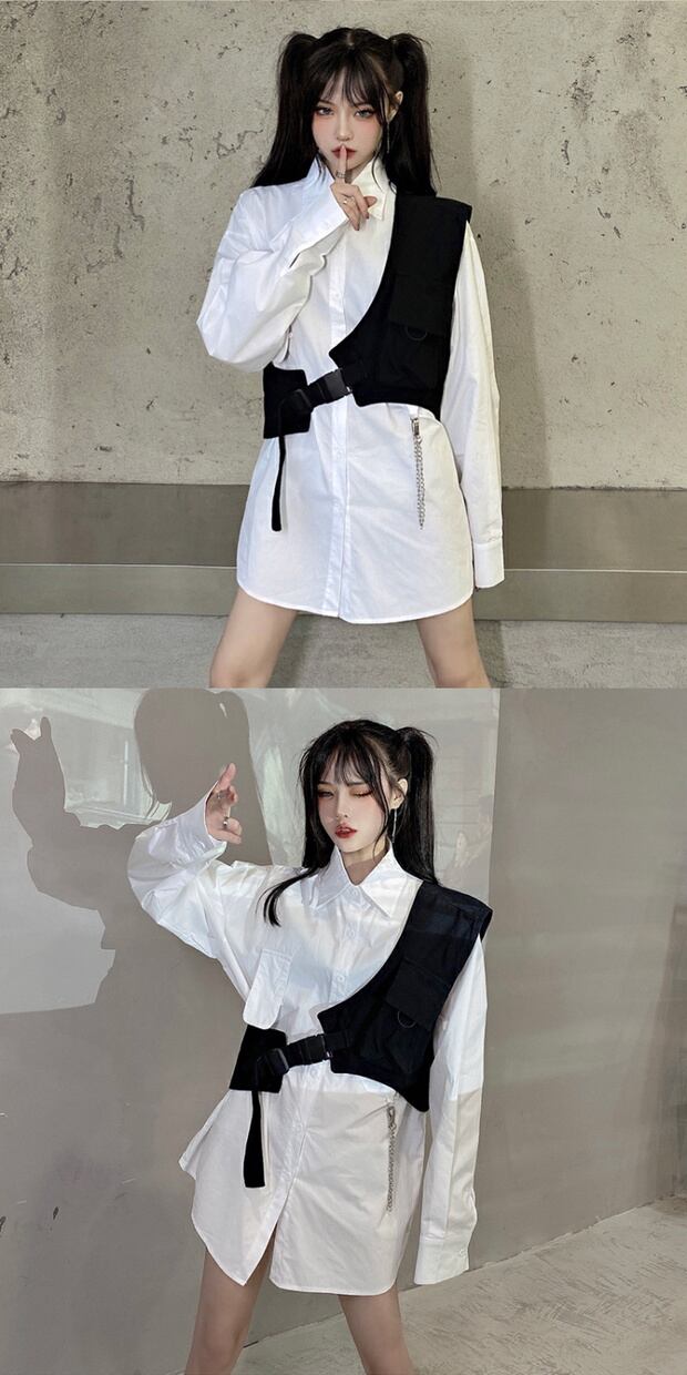色:黒のベスト,白のシャツ