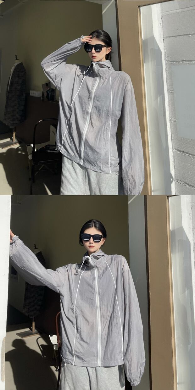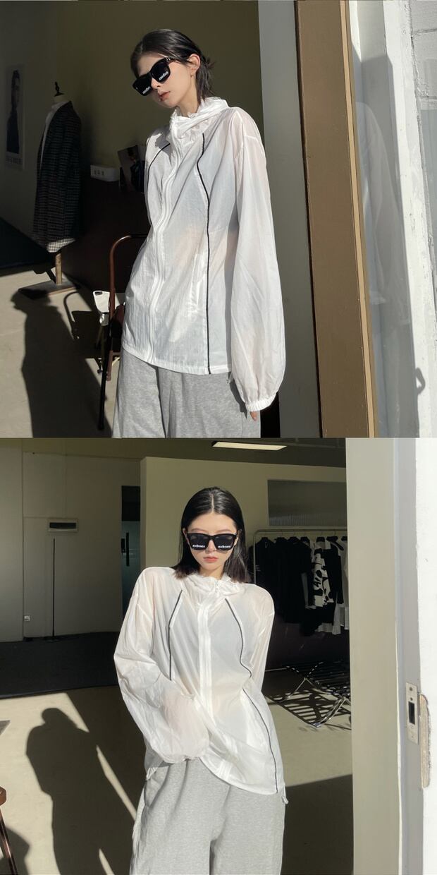 サマールーズシャツ 薄手トップス フードコート ロング 夏物 ケッペル60941794864