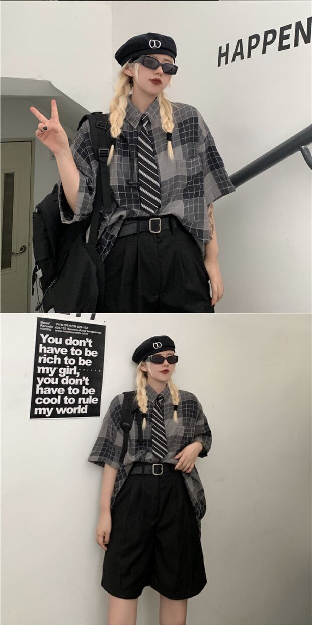 ダークサマールーズスタイルカジュアルシャツ レディース かわいい 夏物 ケッペル46398018662